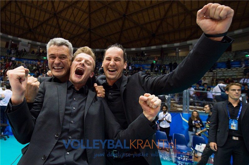 De bondscoaches van de zes overgebleven landen bij de loting in Milaan