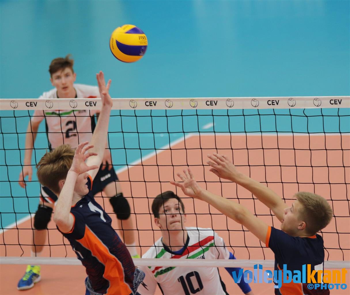 Na twee nederlagen konden de Oranje Jongens <17 alleen nog voor de eer tegen Hongarije spelen. Beide teams had twee keer verloren. Het is soms moeilijk je op te laden, als je minder hebt gepresteerd dan jezelf had verwacht. Dat gold nu voor beide teams. Opvallend was dat de beide teams blokkerend bijna niets tegen hielden en de verdedigingsstrategie bij de Hongaren ver te zoeken was. Tegen het einde van de wedstrijd werd het een foutenfestival, dat gelukkig wel door Oranje gewonnen werd met 25-14, 25-18 en 25-17. Daarmee werd Nederland derde in de poule.