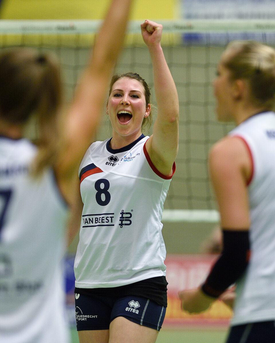 Bij 24-22 had Sliedrecht haar eerste matchpoint in de derde doorgang, maar onder leiding van Shannon Gerhardt zorgde FAST voor een verlenging. Tot een tie-break liet Sliedrecht Sport het niet komen; met 25-18 bereikt de ploeg de kwartfinale.