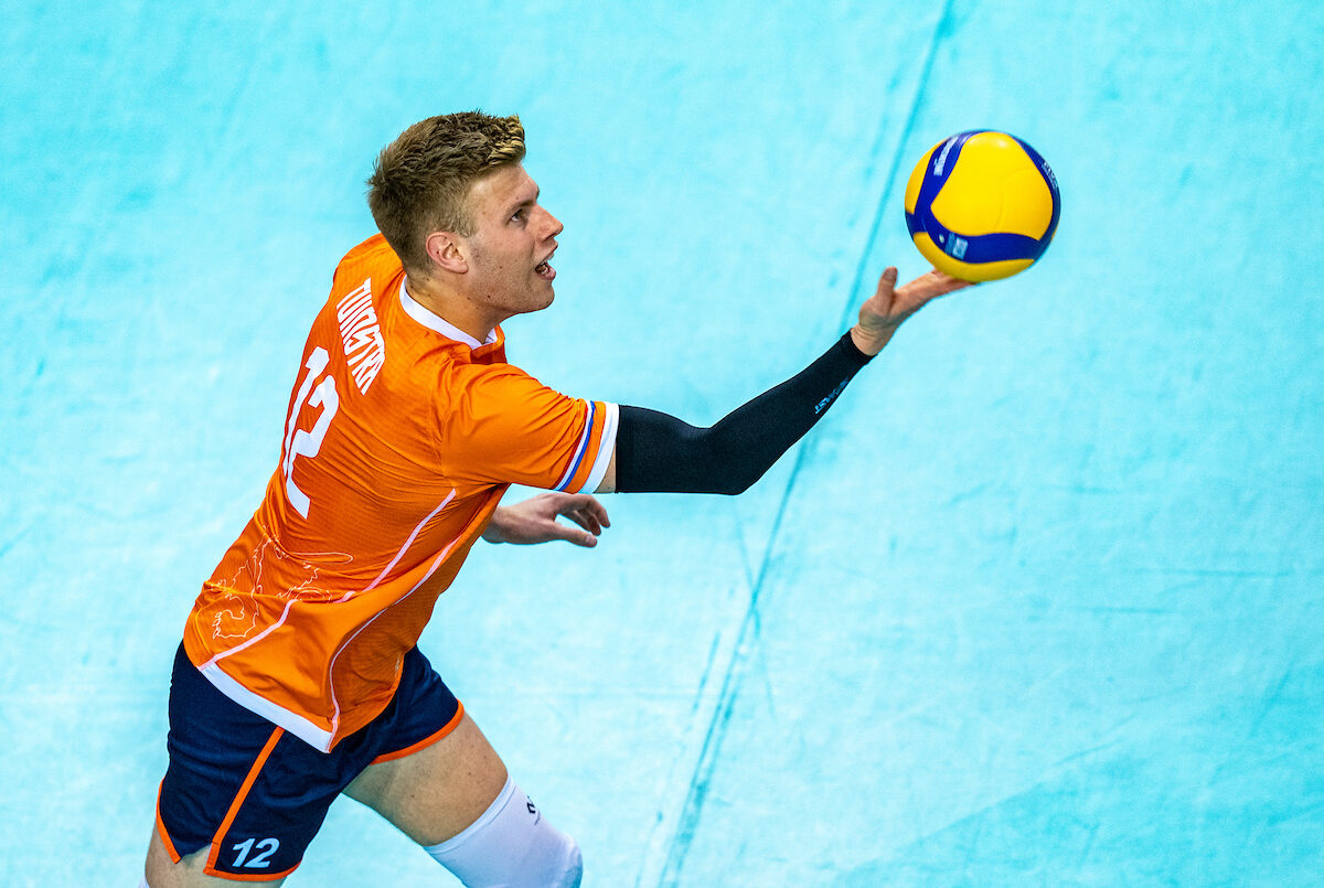 De Nederlandse volleybalmannen zijn er in Polen in geslaagd om de kwartfinale van het EK te bereiken. Na een hele sterke groepsfase stond het vandaag tegenover Portugal, een ploeg dat op papier iets zwakker is dan Nederland. De verwachte plek bij de laatste acht van Europa kwam er dan ook, maar het ging niet zonder horten of stoten. Het was vooral Nimir Abdelaziz die een wisselvallig Oranje (nét) langs Portugal wist te slaan. Na 141 minuten spelen werd het 3-2 (22-25, 25-22, 26-24, 20-25, 15-13).