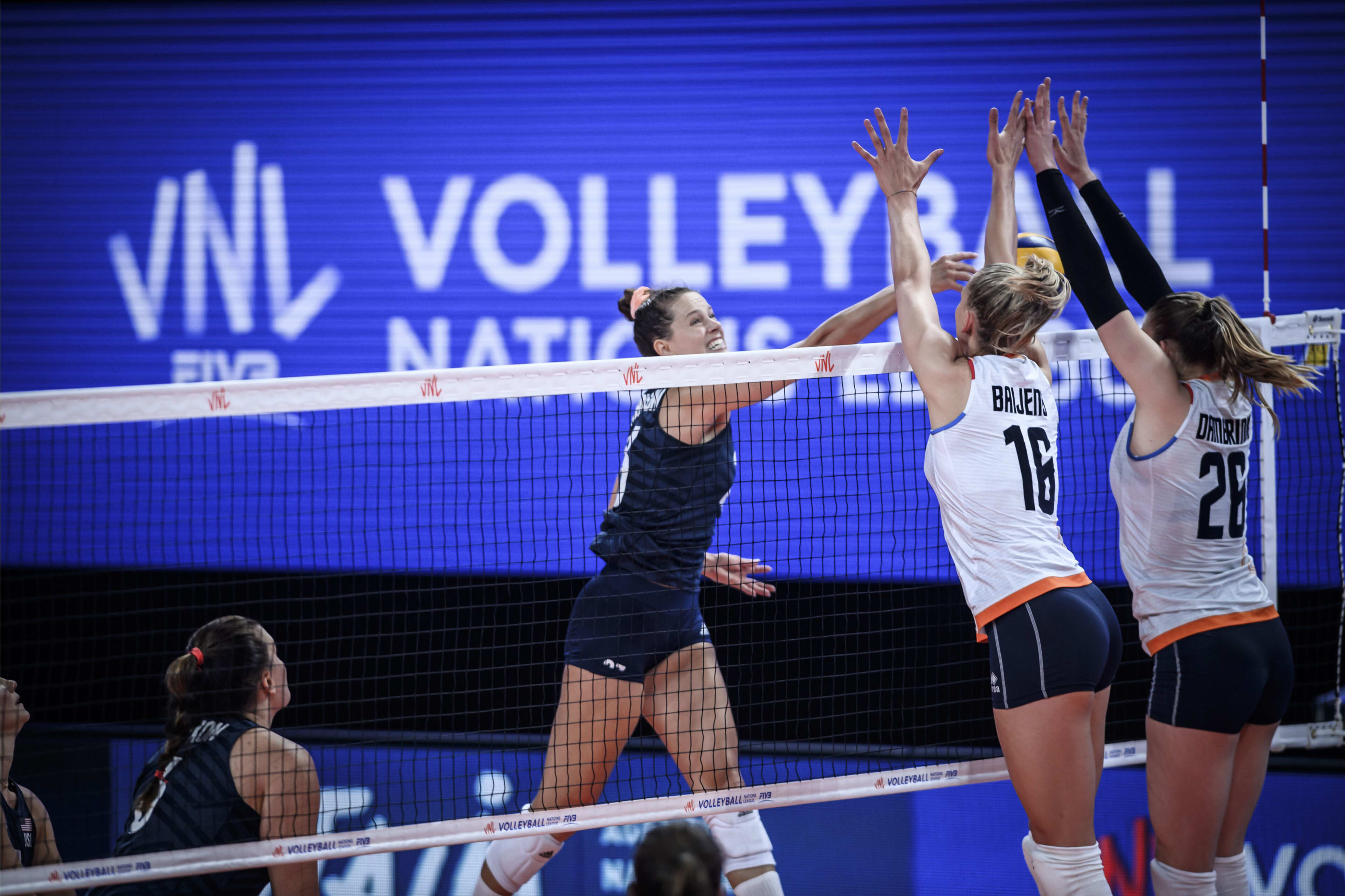 Het is Nederland niet gelukt om dinsdagavond Amerika een voet dwars te zetten. De regerend VNL-winnaar en titelfavoriet voor deze editie versloeg Nederland in drie sets (22-25, 15-25, 16-25).