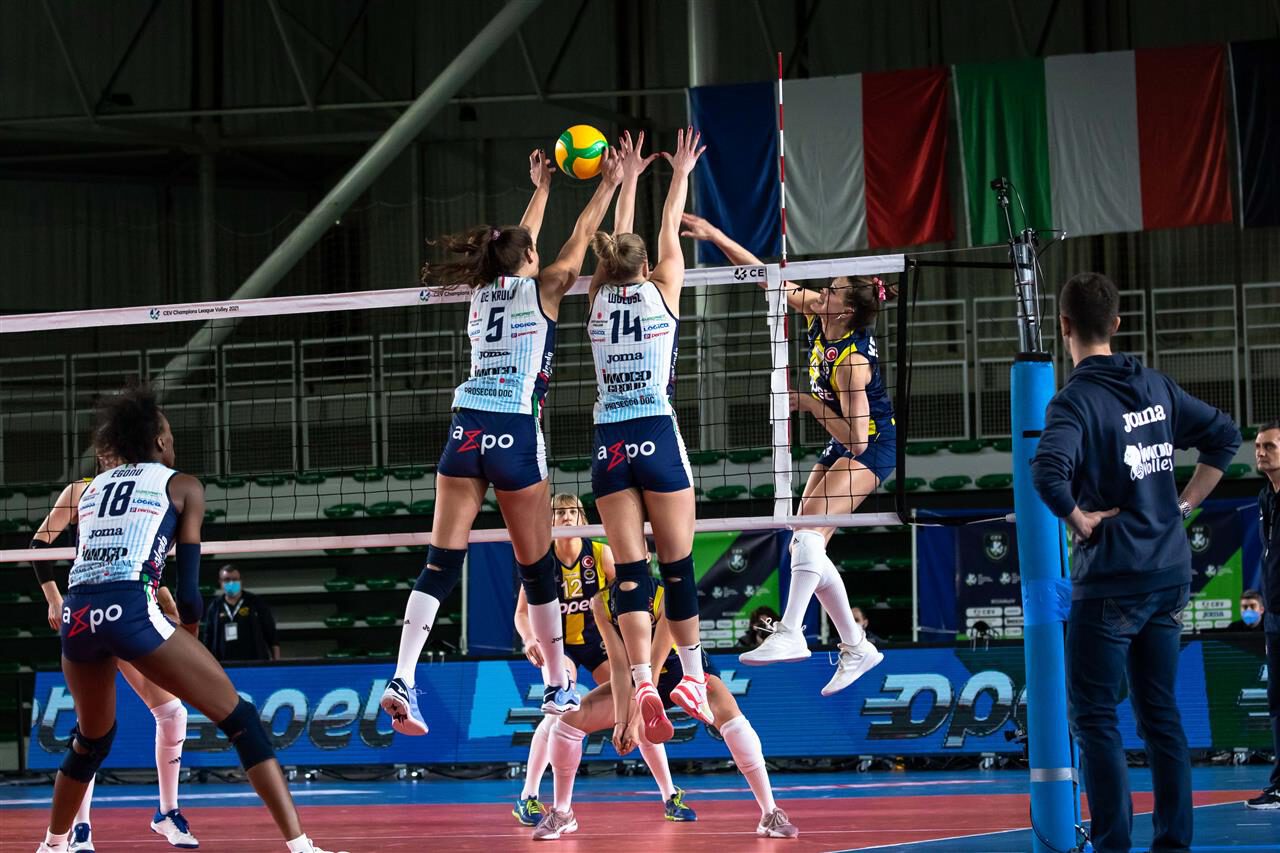 Het beste was voor het laatst bewaard in Poule B van de Champions League. In een spektakelstuk tussen twee Europese volleybalgiganten pakte het ongeslagen Imoco Volley Conegliano, met Robin de Kruijf, de overwinnning in vier sets: 25-19, 22-25, 25-21, 25-17.