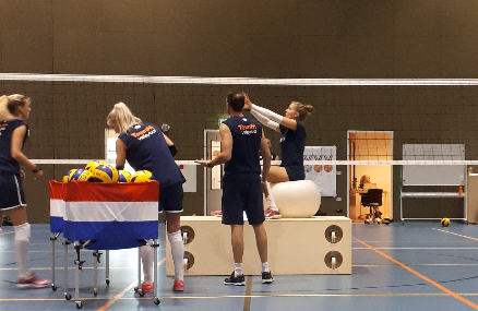 Op de achtergrond het medaillecontract met handtekeningen in de trainingszaal van Papendal
