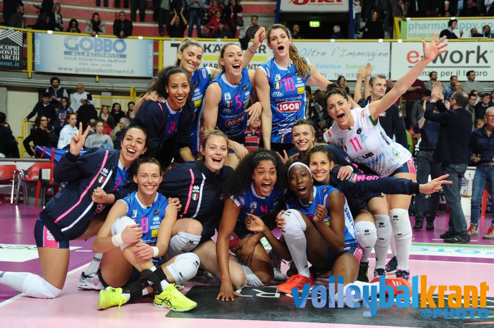 © Rubin/LVF, speelsters Novara en Conegliano vieren de overwinning