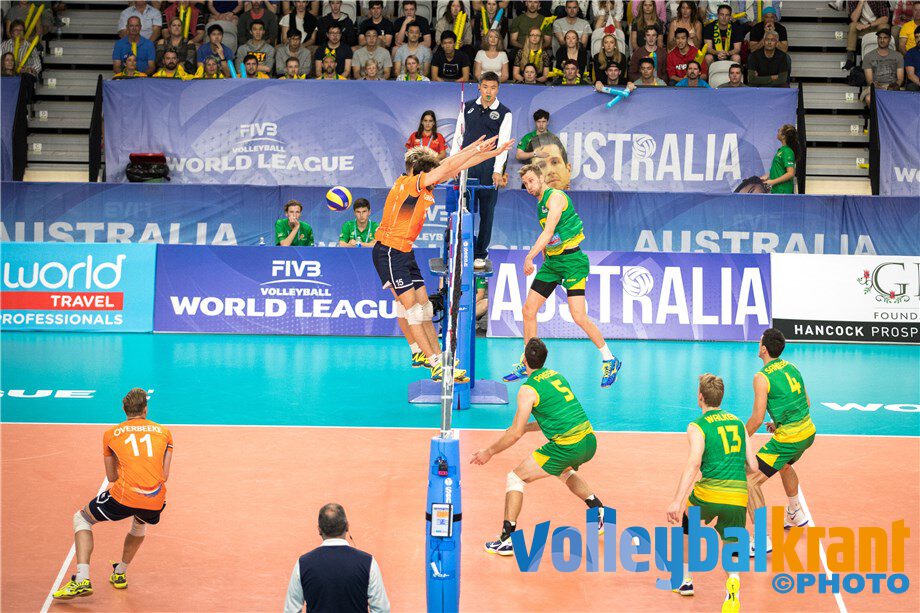 De uitblinkende Australische diagonaalspeler Paul Carrol valt aan tegen Nederland,