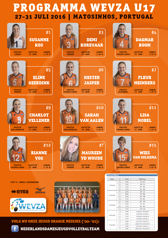 Jeugd Oranje (v) naar Portugal voor achtlandentoernooi