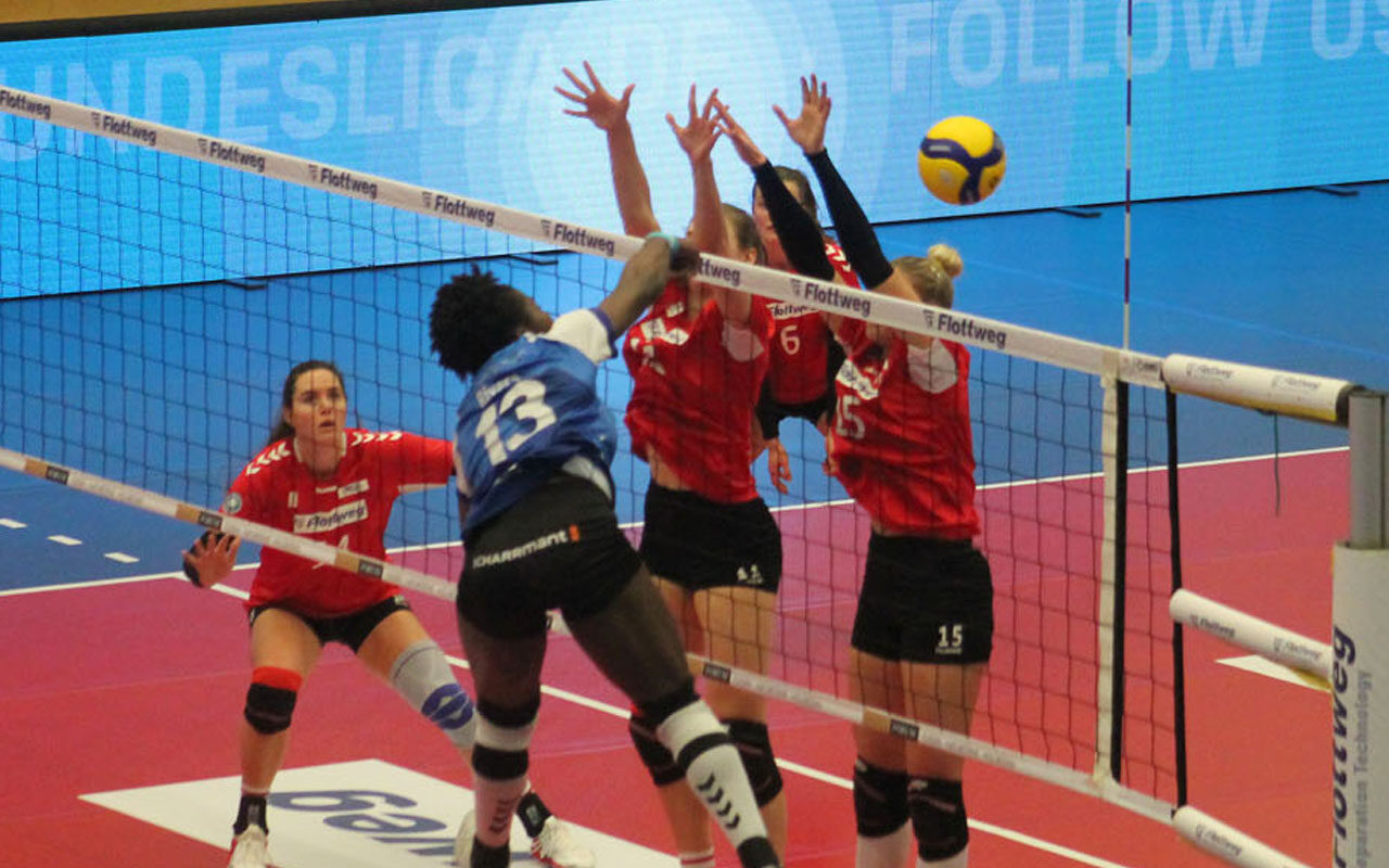 SC Schweriner en Potsdam lieten in hun onderlinge confrontatie zien, weinig voor elkaar onder te doen. Schweriner, met Britt Bongaerts en Nicole Oude Luttikhuis, trok met de 3-2 aan het langste eind. Potsdam ging goed van start en pakte met 23-25 de voorsprong. Na 25-20 en 25-12 had de thuisploeg de beste papieren, maar Potsdam sleepte er na de 22-25 een beslissende 5e set uit. Schweriner kwam op een ruime 11-5 voorsprong, maar Potsdam kwam bij 13-11 toch nog dicht bij een sensatie. Met 15-12 maakte Schweriner het karwei alsnog af. Britt Bongaerts nam vrijwel de hele wedstrijd het spelverdelen voor haar rekening. Oude Luttikhuis kwam niet in actie.