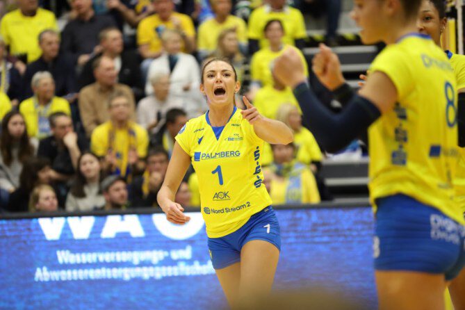 tegen Vilsbiburg. Met de setstanden 25-19, 25-21 en 25-15 kwam het puntentotaal