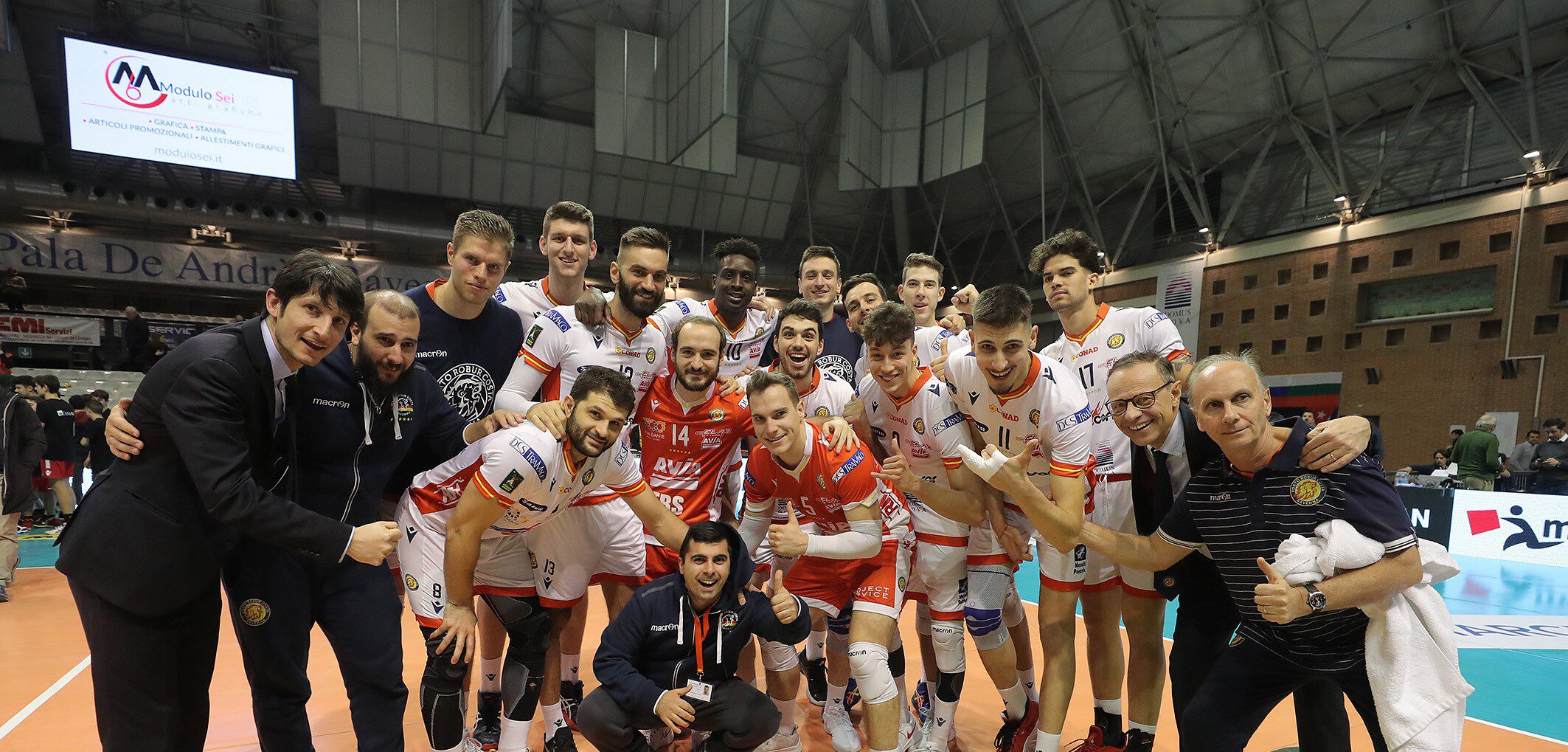 Civitanova is niet alleen de koploper van de Italiaanse Superlega, maar won in 2019 drie hoofdprijzen achter elkaar. Vorig jaar pakte het de ‘scudetto’ (kampioenschap in Italië) en veroverde een week later ook de Champions League. En waar in 2018 nog de finale verloren werd, won het dit seizoen ook nog eens het WK voor clubs. Reden genoeg om vast te stellen dat Civitanova op dit moment het beste team van de wereld is. Met sterren als Juantorena, Leal, Simon en Bruno was de afgelopen periode meer dan succesvol en probeerde het gisteren de ongeslagen reeks van dertien wedstrijden vol te houden. Maar het team van Abdelaziz en Roberto Piazza gooide roet in het eten.
