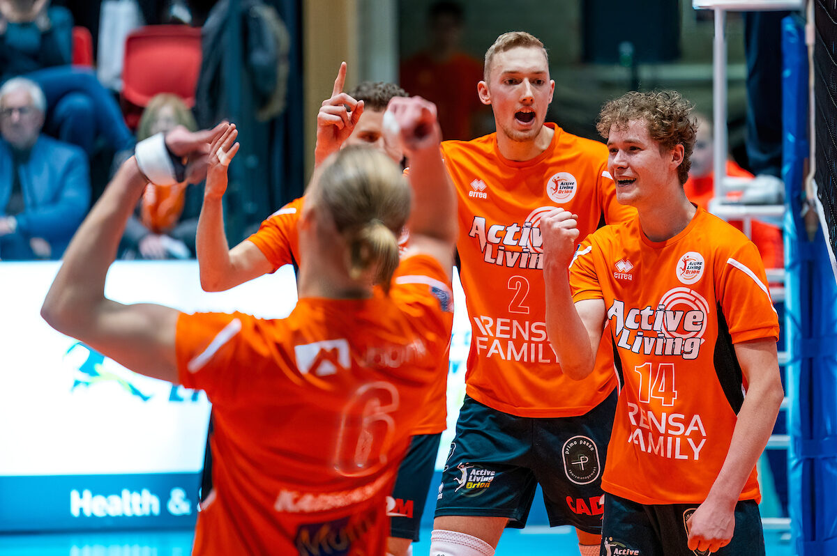 Twee weken geleden won Draisma Dynamo na twee sets achterstand alsnog in vijf sets van Active Living Orion, maar dit weekend was de koploper op de tweede set na heer en meester tegen de regerend landskampioen. Verrassend genoeg koos trainer-coach Redbad Strikwerda voor een opstelling zonder Gijs van Solkema, Cas Abraham en Edvin Svärd, die in de vorige ontmoeting met de Doetinchemse ploeg een groot aandeel hadden in het omdraaien van de achterstand. Dirk Sparidans, trainer-coach van Active Living Orion, vertrouwde op zijn vaste basis en zag dat beloond worden met een ruime overwinning (13-25, 25-15, 16-25, 20-25). De aanvallende en blokkerende impulsen van de nummer één gaven de doorslag, met Tom Koops (19 punten), Samuli Kaislasalo (14 punten) en Beau Wortelboer (12 punten) in de dubbele cijfers. Met nog één wedstrijd te gaan in de A-poule is Active Living Orion zeker van de eerste plaats en heeft daardoor in de halve finale en (eventuele) finale het thuisvoordeel. Draisma Dynamo weet eveneens al dat het op de tweede plaats eindigt.