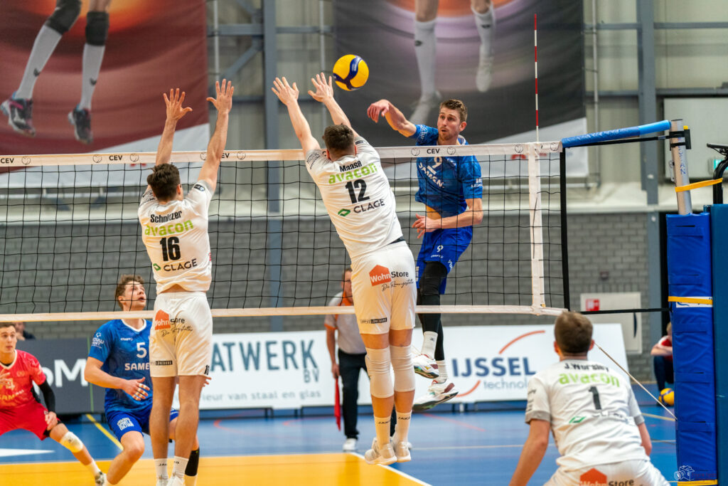 Tijdens de achtste finales van de CEV Cup startte Arjan Taaij gisteren met Markus Held, Kernl, McCauley, Coenen, Hofhuis, De Vries en Spiegelaar. De begin van de wedstrijd was desastreus voor Lycurgus. Op de service van Cowell wist Lycurgus de side-out niet te maken en het stond al snel 0-7. Af en toe liet de thuisploeg mooie punten zien, maar een agressief Lüneburg maakte in de eerste set korte metten met Lycurgus (15-25). Ook het begin van set twee was niet goed. De ploeg van Taaij kwam niet los en de Duitse ploeg bleef zeer efficiënt aanvallen. Halverwege lukte het Lycurgus om wat beter side-out te spelen, maar serverend (7 fouten in de set) kreeg het niks klaargespeeld. Via 16-25 ging ook set twee naar de bezoekers. De inmiddels ingevallen Tieme de Jong deed het in de derde set netjes en wist vooral Kern goed te vinden. Een goed begin van de derde doorgang was hetgeen wat Lycurgus nodig had, en opeens ging de ploeg blokkeren. Ook de ingevallen Klok op de liberopositie gaf de ploeg veel energie en Lycurgus wist de wedstrijd open te breken. Met 55% aanval en 5 killblocks liet de Nederlandse ploeg veerkracht zien (25-18). Dit spel werd ook in set vier doorgezet, en was het nu Lüneburg dat meer fouten ging maken. De Duitsers serveerden maar liefst 9 keer fout en ook aanvallend faalde het meerdere malen. Ook het Groningse publiek liet zich horen en via 25-21 dwong Lycurgus een vijfde set af. Ondanks wat servicefouten hield de thuisploeg ook in de laatste set het initiatief, maar vanaf 12-11 ging het mis. Door drie eigen (stomme) fouten verzuimde Lycurgus om de comeback compleet te maken. Lüneburg ging er zo alsnog met de winst vandoor (12-15 in de vijfde set) en heeft 14 december in eigen huis alleen een overwinning nodig om door te gaan. Lycurgus is door bij een 0-3 of 1-3 winst. Bij een 2-3 overwinning moet er een Golden Set aan de pas komen.