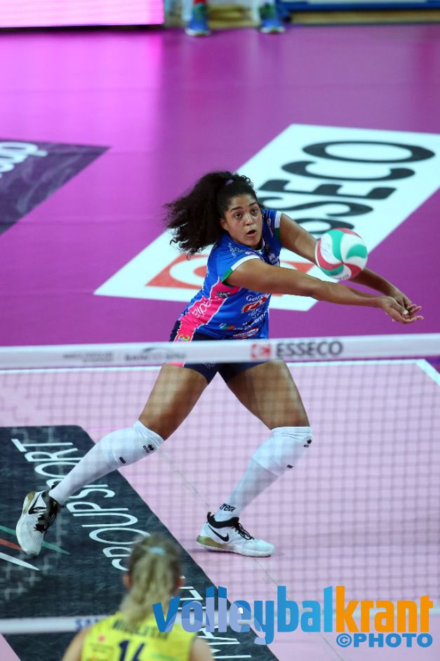 Aanvankelijk leek Novara het beste van het spel te hebben en pakte dan ook de eerste set. In set twee had Conegliano al vroeg een ruime voorsprong te pakken en gaf die niet meer weg. Conegliano maakte in set twee maar liefst zes aces tegenover nul scores uit de service voor Novara. Het is stuivertje wisselen tussen de twee topteams, want daarna is het weer Novara wat met ruime cijfers (25-16) een 2-1 voorsprong in sets neemt. In set vier wordt het dan echt spannend, op 23-24 is er setpoint voor Conegliano om de vijfde set in te gaan. Na een lange rally slaat Plak de bal uit en moet een tiebreak de beslissing brengen. Op 11-14 in set vijf is het uiteindelijk Robin de Kruijf die het matchpoint via een omloopbal binnenslaat.