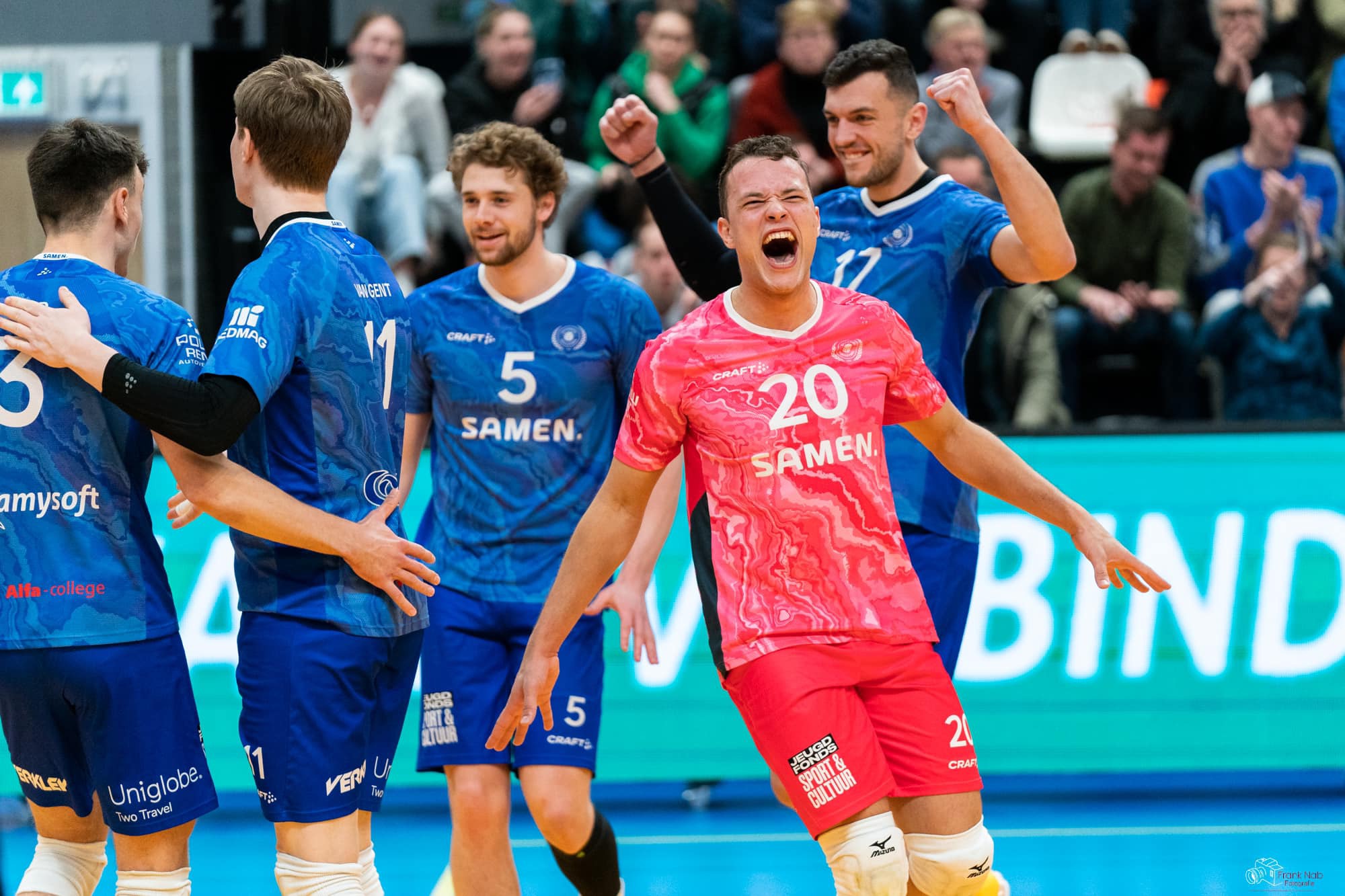 ‘Wij begonnen overtuigend en dat wisten we twee sets vast te houden. In de laatste set was het spannend. In die set hadden we drie keer een gaatje maar komen zij ook drie keer terug. Wij kregen een aantal side-outs tegen waar de passing goed was. Uiteindelijk zijn wij de betere boven de twintig punten en dat geeft vertrouwen’, zei Markus Held na afloop over de zege van zijn ploeg.