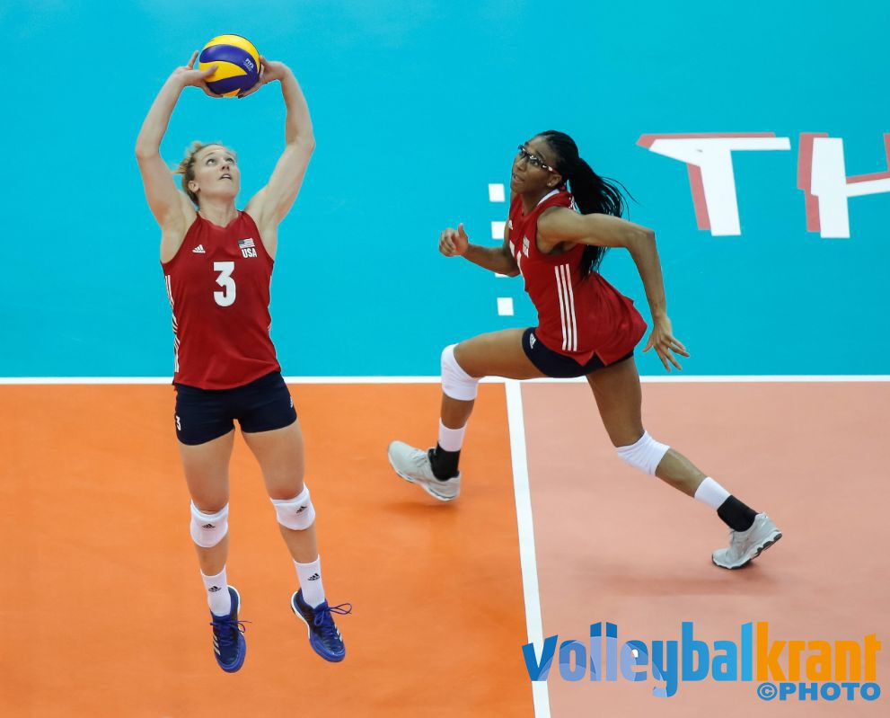 De strijd ging gelijk op in set twee met beide teams die bij elk punt tot het uiterste gingen. Al vroeg in de set wordt Kim Hill binnen de lijnen gebracht door Kiraly, die meteen ook een aantal scores op haar naam zette. Amerika pakte al vlot een voorsprong van 3 punten, dat eigenlijk de gehele set op het scorebord bleef staan. Met Bartsch-Hackley terug in het veld, maar nu op de diagonaal positie, kwamen de Amerikaanse dames bij 24-21 op setpoint. Het tweede werd door Kim Hill binnen geslagen en daarmee werd het 1-1.