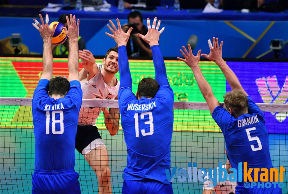 De Russen die door velen worden bestempeld als het beste team ter wereld is uitgeschakeld op het WK. Gisteren verloren de Russen al van Brazilië en vandaag waren de Verenigde Staten in drie sets te sterk.