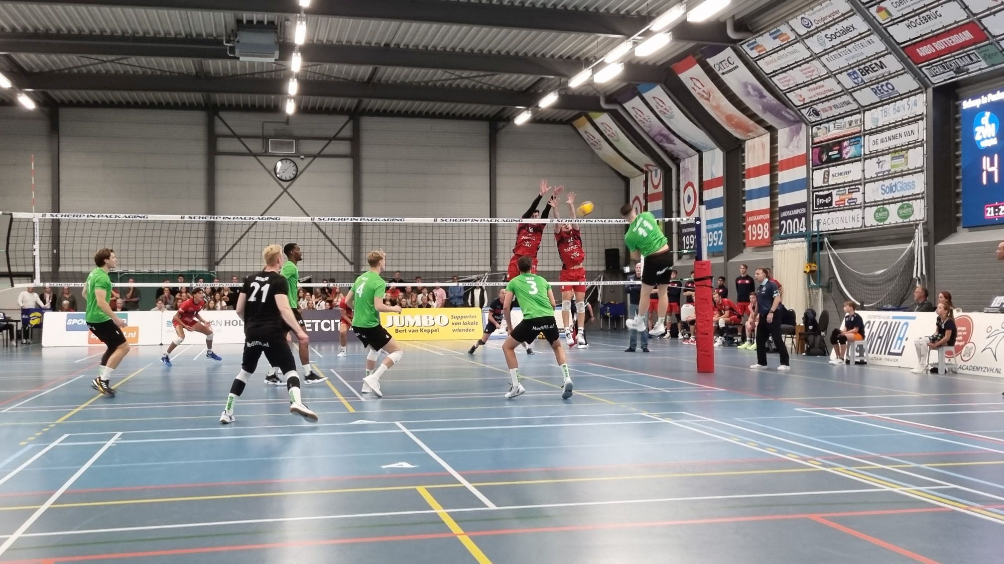 Scherp in Packaging ZVH bleef echter knokken tot het laatste moment. Nadat ze de hele set op achterstand stonden draaide onder andere de dubbele wissel de zaken om en sloeg topscorer Benjamin Parkinson zijn ploeg naar setpunt. Maar zowel op 24-23 als 25-24 serveerde ZVH-spelers de bal buiten de lijnen. Vijf wedstrijdpunten van SSS volgden en nogmaals een fout van de ploeg van hoofdcoach Rodin Merx bezorgden SSS in overtime de winst. Niet alleen de ploeg van Paul van der Ven, maar ook de Green Army (de fanclub van SSS) kwam in Zevenhuizen als winnaar van de tribune.