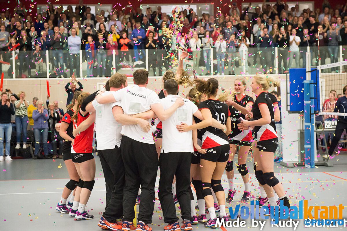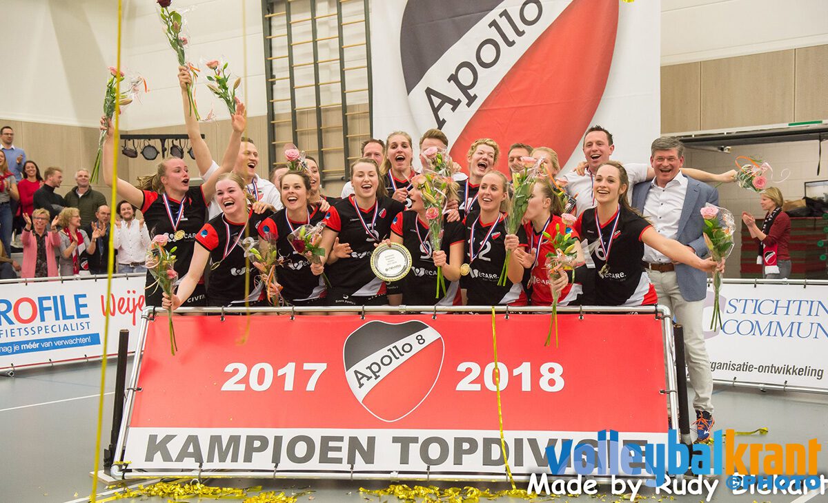 Het zat er al een tijdje aan te komen, maar vandaag kon dan eindelijk de prijs in ontvangst worden genomen. Apollo 8 deed wat ze moest doen en won van Alterno 2 en bracht het puntentotaal op 49. Dat maakt dat ze met nog twee ronden te spelen niet meer in te halen zijn. Een prachtig kampioensteam en een welverdiende promotie naar de eredivisie.