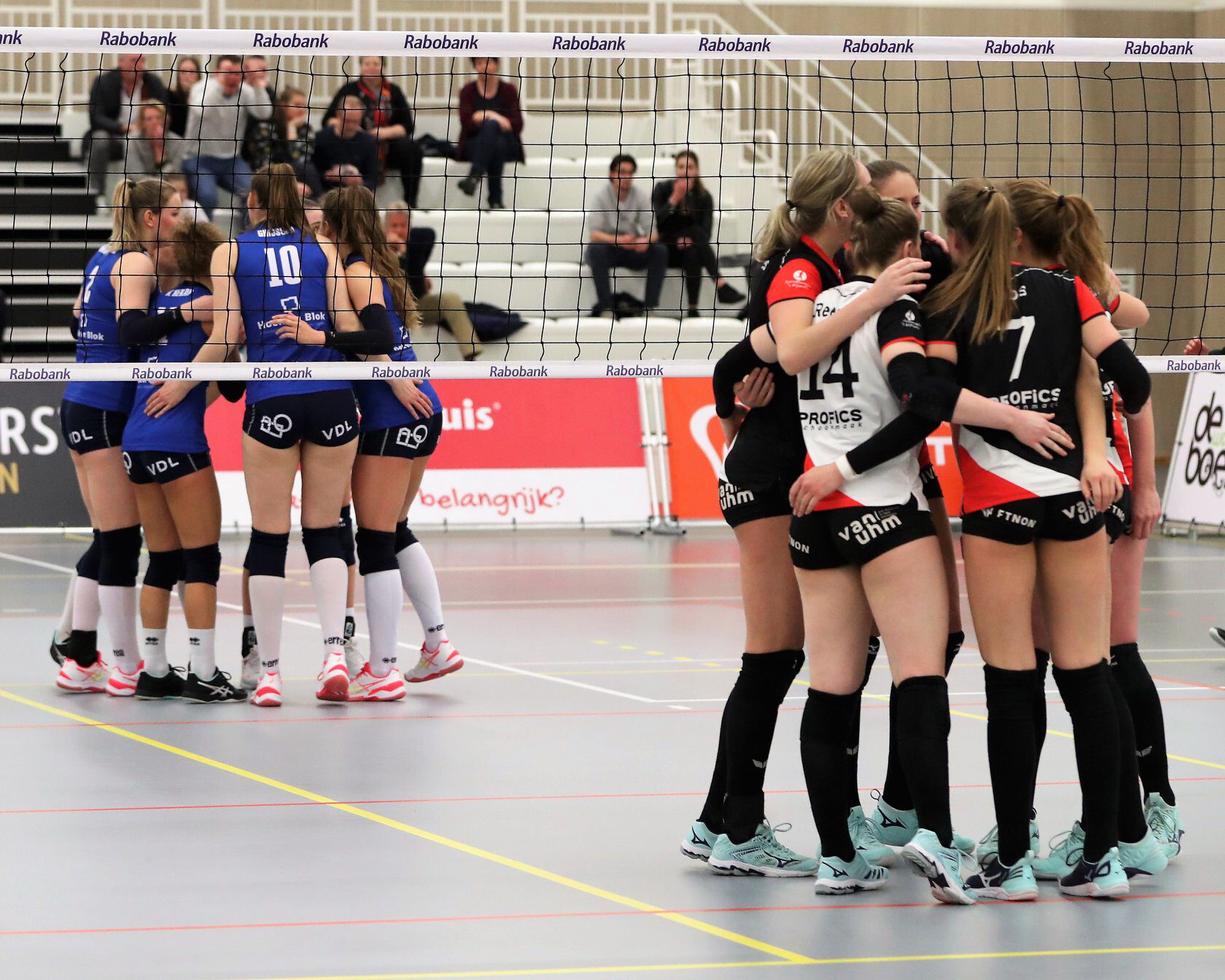In de Sneker Sporthal waren VC Sneek en FAST slechts één set aan elkaar gewaagd. Alleen in de eerste set kon FAST tegenstand bieden, waarin de teams tot het einde gelijk op gingen. De thuisploeg kwam op setpoint door een lange rally te winnen (24-23), waarna Britt Scheurs met een killblock de wedstrijd besliste.