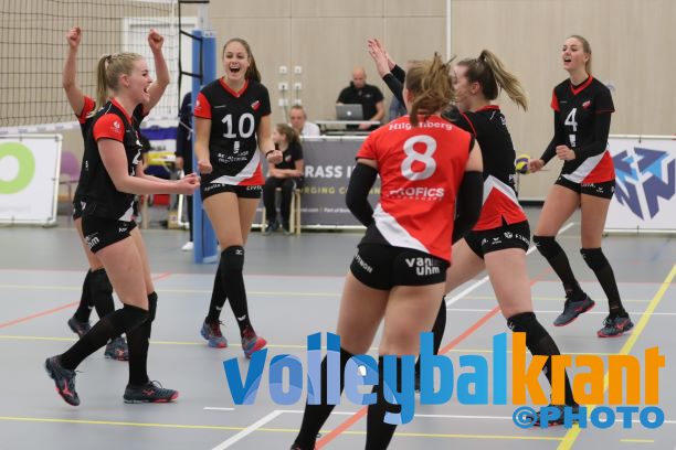 ‘ We beginnen de wedstrijd goed, maar laten de tegenstander weglopen door eigen persoonlijke fouten’, aldus passer/ loper Rinske Hofste. ‘ In de derde set geven we een ruime voorsprong weg, echt zonde. Het niveau is nog niet constant genoeg’.