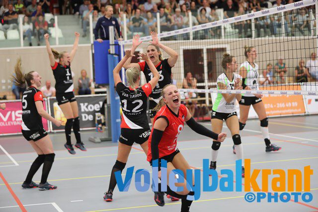 Passer/ loper Juliette Huisman was uiteraard erg blij met het resultaat. ‘We kunnen natuurlijk niet tevreden zijn over de eerste set. Er werden veel fouten gemaakt, vooral passend en we wisten zelf ook geen servedruk te brengen. In de loop van de wedstrijd kwamen we beter in ons spel. De fouten gingen eruit en we wisten veel te scoren met onze serve en blokkering. Uiteindelijk was het een mooie spannende pot waarbij we in het midden van de sets het verschil wisten te maken’.