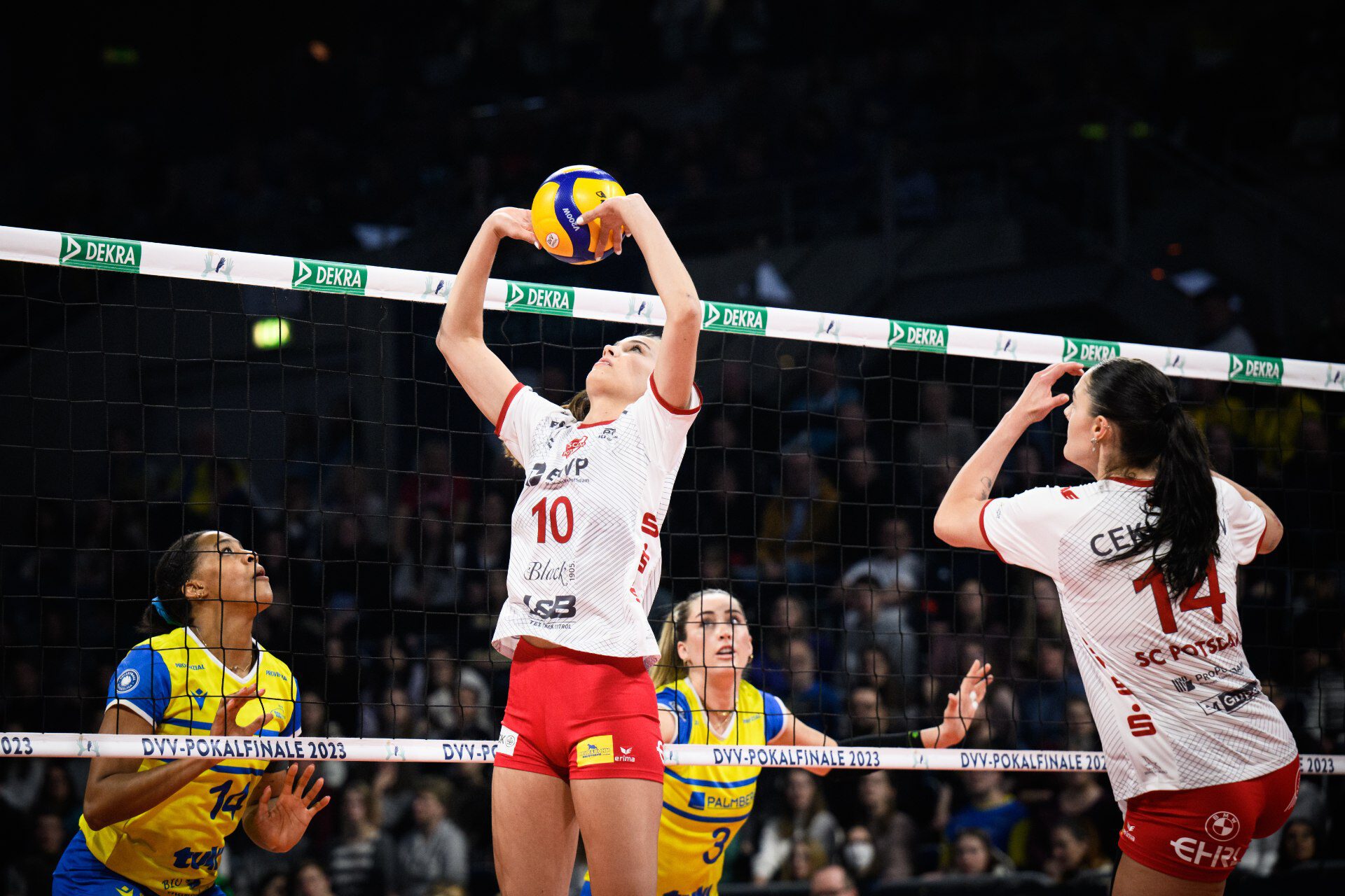 Voor meer dan achtduizend toeschouwers werden in de stad Mannheim zowel de mannen- als de vrouwenfinale gespeeld. Nadat de mannenfinale werd gewonnen door Berlin Recycling Volleys was het tijd voor de apotheose van de avond. Er waren drie Nederlandse speelsters die een basisplaats hadden. De nieuwe Nederlandse bondscoach Felix Koslowski had een basisplek voor Indy Baijens, terwijl aan de andere kant Hester Jasper en Sarah van Aalen mochten startten. Elles Dambrink en Florien Reesink kwamen niet in actie.