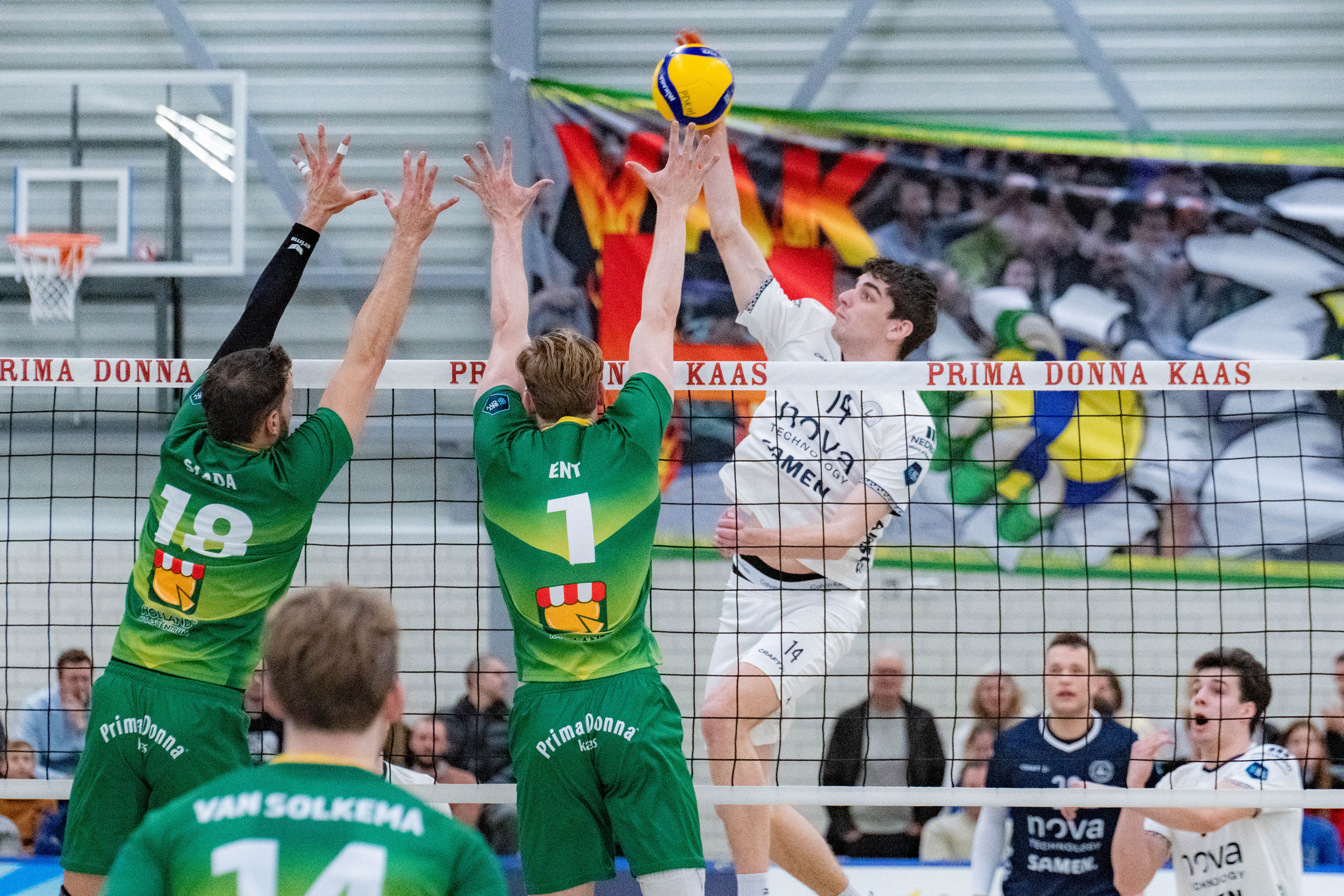 Maar Nova Tech Lycurgus heeft niet voor niks in de spelersselectie geïnvesteerd en Mark Lebedew gaf Gijs van Solkema de taak het tij te keren. De Groningers wisten eindelijk PDK te temmen en ze wisten de thuisploeg in set drie zelfs op slechts 18% aanval te houden. In set vier begon het onder leiding van Van Solkema écht te draaien. De pass was onder controle en Van Schie, Parraguire en Marques namen hun verantwoordelijkheid. Na twee flitsende sets van Nova Tech Lycurgus leek de pap op bij Prima Donna Kaas en de nummer drie van de Eredivisie had ook in de vijfde sets niks over.