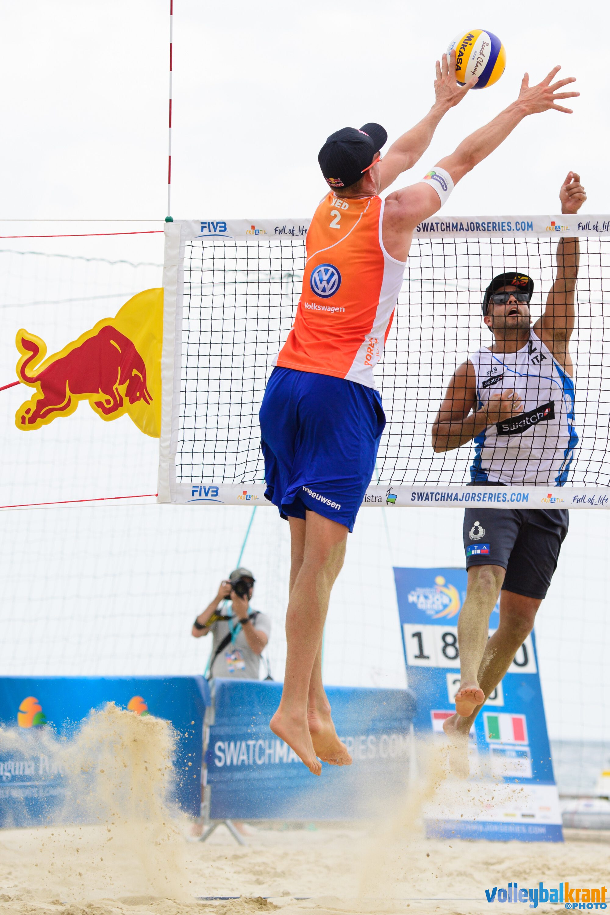 Brouwer/Meeuwsen was de favoriet voor dit treffen, maar had tijdens de eerste set veel moeite. Bijna verslikten de Nederlandse beachboys zich in de Italiaanse opponent, maar met 24-22 werd de winst toch binnengehaald. In de tweede set stelden Brouwer en Meeuwsen orde op zaken. Er werd een snelle voorsprong gepakt die die werd niet meer losgelaten. Met een mooi blok van Meeuwsen en een rake klap van Brouwer werd deze periode met duidelijke cijfers (21-10) op naam geschreven.