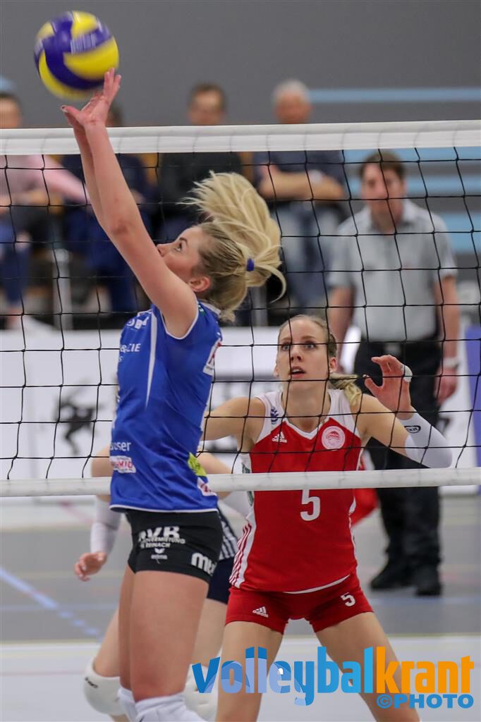 Olympiacos SFP Piraeus speelde tegen Sm’aesch Pfeffingen, met de Nederlandse spelverdeelster Tess von Piekartz. In eigen huis verloor Sm’aesch met 1-3 en ook in Griekenland was het niet opgewassen tegen het sterke Olympiacos. In eerste set was het verschil groot, via 16/3 gingen de Grieken door naar 21/4. In de tweede set kwamen de Zwitsers beter in de wedstrijd maar in de eindfase was Olympiacos wederom sterker. De laatste set kende een vergelijkbaar verloop (25/4, 25/18, 25/20). De Duitse international Saskia Hippe werd topscoorder met 21 punten. Von Piekartz maakte 3 punten. In de halve finale staat Olympiacos tegenover de winnaar van het duel tussen TJ Ostrava en Dinamo Krasnodar.