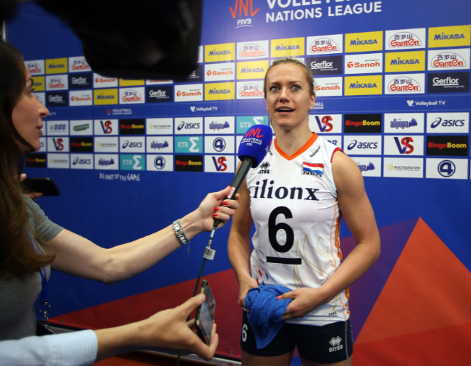 Over het niveau van Oranje in de laaste week van de Volleyball Nations League is Balkestein ook tevreden. ,,Het niveau gaat elke wedstrijd iets omhoog dus dat is mooi.'' Vooral over het binnenhalen van de 2e set tegen Rusland, na met 19-24 achter gestaan te hebben, geeft de aanvoerster een goed gevoel. ,,Voor een team is het erg belangrijk om te weten dat je ook bij zo'n stand toch nog kunt winnen. Dat hebben we laten zien.''