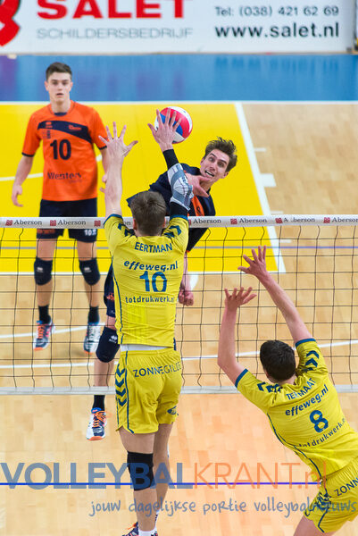 Waar Orion over een ruime week voor een verrassing hoopt te zorgen in de Final Four te Zwolle, moest het donderdagavond zoals verwacht zijn meerdere erkennen in de Zwolse ploeg. De wedstrijd stond bol van de servicefouten, met name in de eerste set bij Landstede, maar aanvallend wisten de twee teams goed tot scoren te komen. Dat was zeker het geval bij Wessel Blom en Wouter ter Maat. Laatstgenoemde werd de topscorer met 21 punten in de eenvoudige 3-0 overwinning.