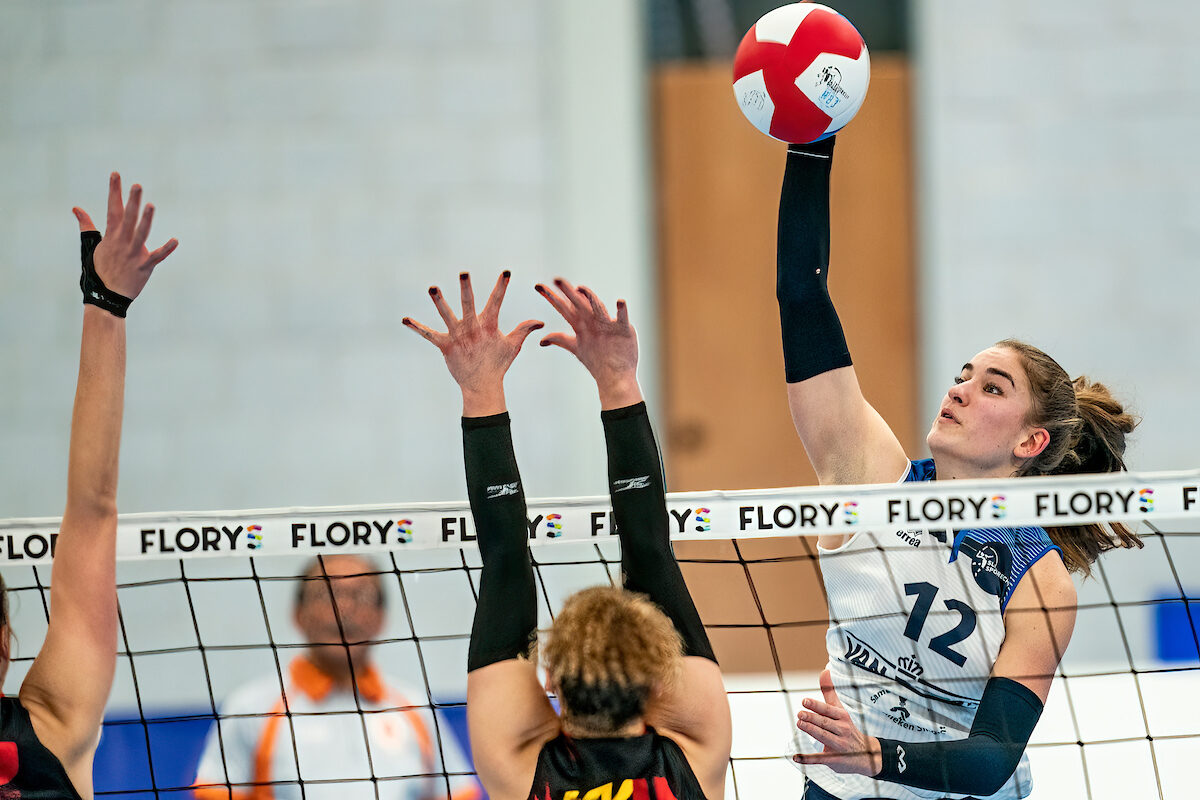 De eerste set was voor beide teams nog aftasten. Af en toe pakte één van beiden een kleine voorsprong, maar bij de big points was het VV Utrecht dat een voorsprong van drie punten nam. Sliedrecht Sport kwam toch nog op gelijke hoogte, waarna de setpoints over en weer gingen. Uiteindelijk was het VV Utrecht dat de eerste set naar zich toe trok, dankzij een killblock van aanvoerster Janssen (26-28). In set twee nam de thuisploeg aanvankelijk het initiatief, maar aan de hand van uitblinkster Iris Reinders kwam de Utrechtse club er weer naast. Het eerste setpoint was vervolgens voor de bezoekers, dat op de service van Marly Bak direct verzilverd werd (23-25). Opnieuw was het Janssen met een knap killblock om de set in het slot te gooien.