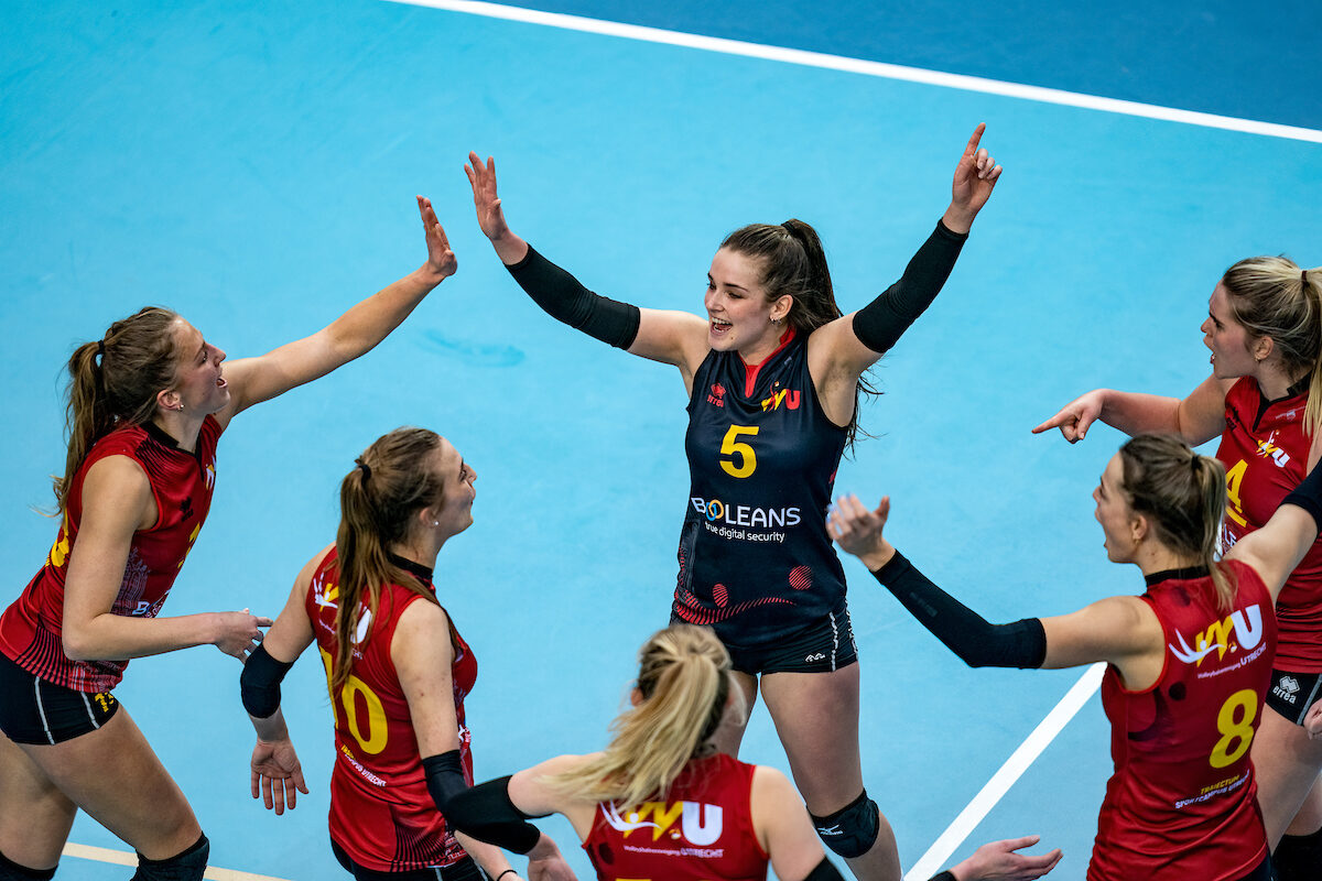 In de kampioenspoule begon Booleans/VV Utrecht, dankzij de eerste plaats in de reguliere competitie, met de meeste punten. Desondanks is het verschil niet groot met de andere teams en blijven de eerste twee plekken voor de meeste ploegen binnen handbereik. De wedstrijd tegen Apollo 8 kon dan ook beide kanten op gaan, maar het voordeel zou uiteindelijk naar de koploper gaan. In eigen huis liet Booleans/VV Utrecht er geen gras over groeien, ging furieus van start en liet de gasten geen moment de kans om in ritme te komen. Vooral passend en aanvallend had Apollo 8 het lastig en kwam het geen moment in de buurt van (set)winst (25-15, 25-14, 25-20). Topscoorders werden de linkshandige diagonalen Iris Reinders (13 punten) en Jorieke Bodde (12 punten), maar ook Marit Pasterkamp (12 punten, 4 aces) blonk uit. Thijs Oosting concludeerde het volgende in gesprek met Tubantia: “We wisten wat we konden verwachten, het plan dat we hadden klopte, maar het lukte ons nooit om Utrecht onder druk te zetten. Over de hele wedstrijd maakten we 39 fouten; twintig in de aanval, tien in de serve en negen in de passing. Dat is te veel, terwijl Utrecht heel degelijk speelde.”