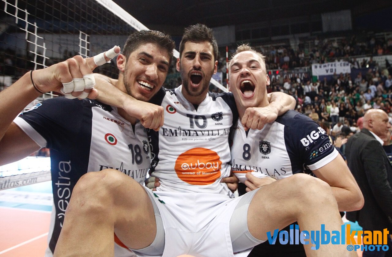 Die speelde naar tevredenheid en ging met zijn team af op de play-offs om de titel. Vlak voor dat moment werd echter een andere diagonaal aangetrokken door de club in de persoon van Kay van Dijk. Hij was een oude bekende van de trainer van Siena, Juan Manuel Cichello. Die was trainer in het seizoen 2012-2013 van het Italiaanse Molfetta en had toen onder meer Kay van Dijk in zijn team, waarmee het duo destijds ook promotie naar de A1 afdwong. “Toen Juan Manuel me belde, heb ik geen moment getwijfeld”, laat Van Dijk weten. Het duo had veel vertrouwen in elkaar en de ervaring van Van Dijk kwam in de play-offs van pas. Hoewel dat dus ten koste ging van Boswinkel. “Ik had op dat moment wel even gemengde gevoelens”, geeft Boswinkel toe. “Ik speelde, ze waren tevreden en toch kwam er iemand bij. Met zijn ervaring weet je natuurlijk dat ze dat niet voor niks doen. Het is allemaal goed uitgepakt want Kay is, zeker in de play-offs, heel belangrijk geweest voor ons.”