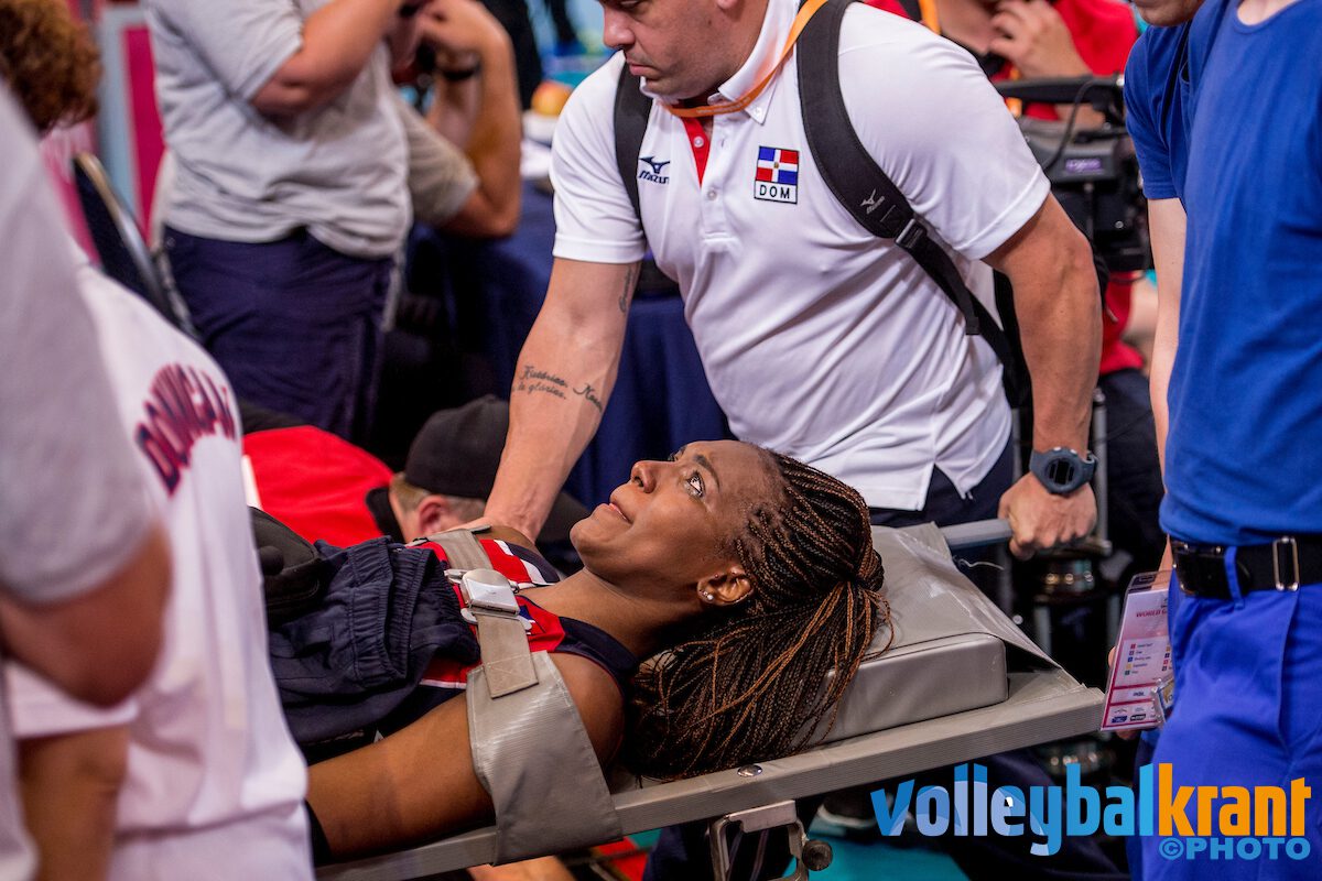 Wat er zaterdagavond precies is gebeurd, blijft onduidelijk. Haar coach, de Braziliaan Marcos Kwiek, houdt het op 'an injury'. Het meest waarschijnlijk is dat de boomlange aanvalster in het warme Omnisport bevangen raakte door de hitte en moeite had met ademhalen. Gelukkig voor haar en de Dominicaanse Republiek, had ze de dag erna zichtbaar nergens last van en wist ze met maar liefst 18 aanvalspunten, drie blokpunten en een vrij stabiele pass haar team op sleeptouw te nemen.