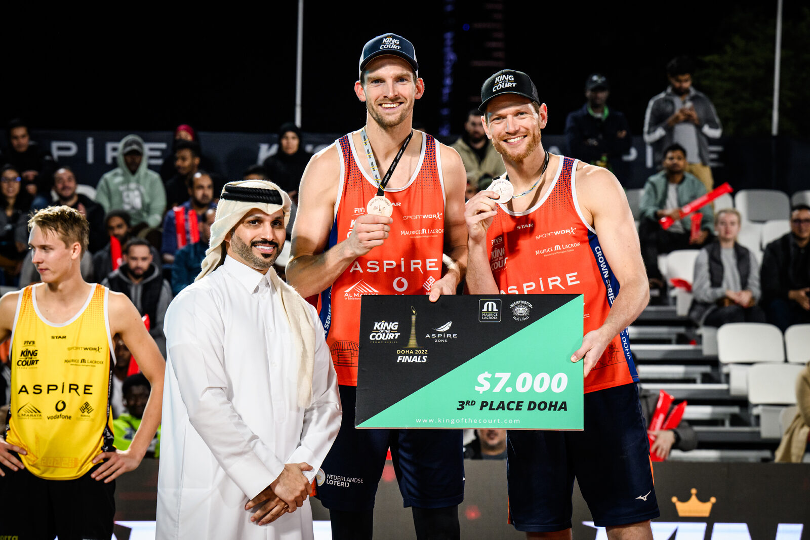 Nederland heeft tijdens de King of the Court Crown Series Finals 2022 goud, zilver en brons gewonnen. In Doha, Qatar begon de strijd om de kroon afgelopen woensdag al. Vandaag stonden de finales op het programma. Brecht Piersma en Wies Bekhuis wisten daarin op knappe wijze het goud te pakken. Bij de mannen was er zilver en brons voor Nederland. Het was Europees kampioen Åhman/Hellvig dat er met de kroon vandoor ging.