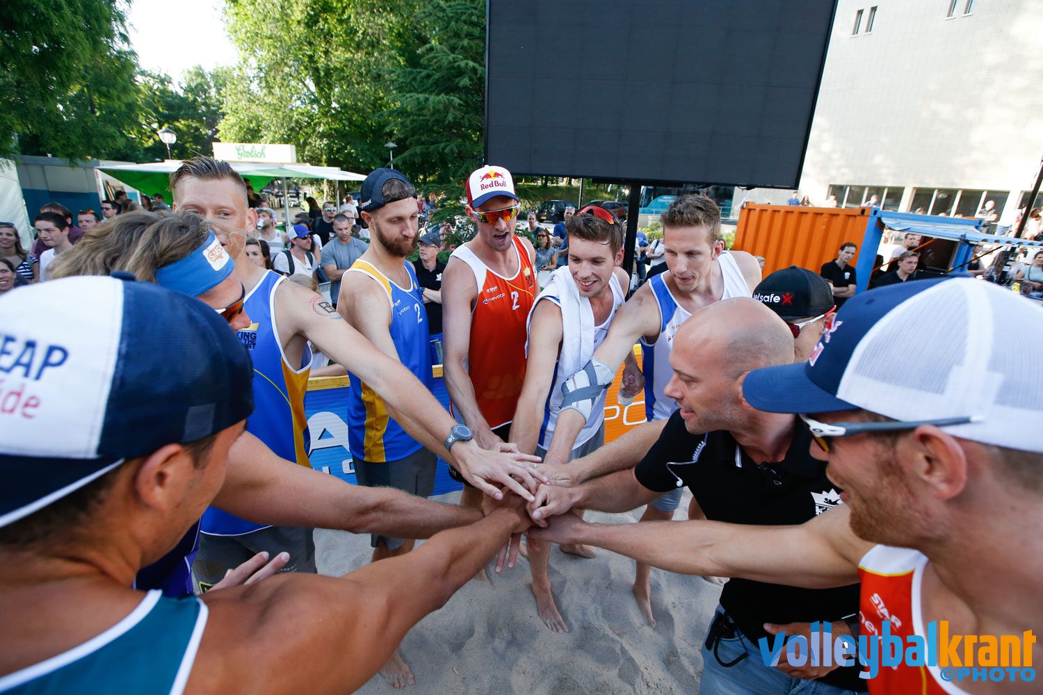 Het was een feestje voor beachvolleybalfans, woensdagavond op het Lucasbolwerk in Utrecht. Vijf internationale topteams streden voor de allereerste titel van 'King of the Court'. Na drie rondes kon er maar één de winnaar zijn: voor eigen publiek werden Alexander Brouwer en Robert Meeuwsen tot koning van het veld gekroond.