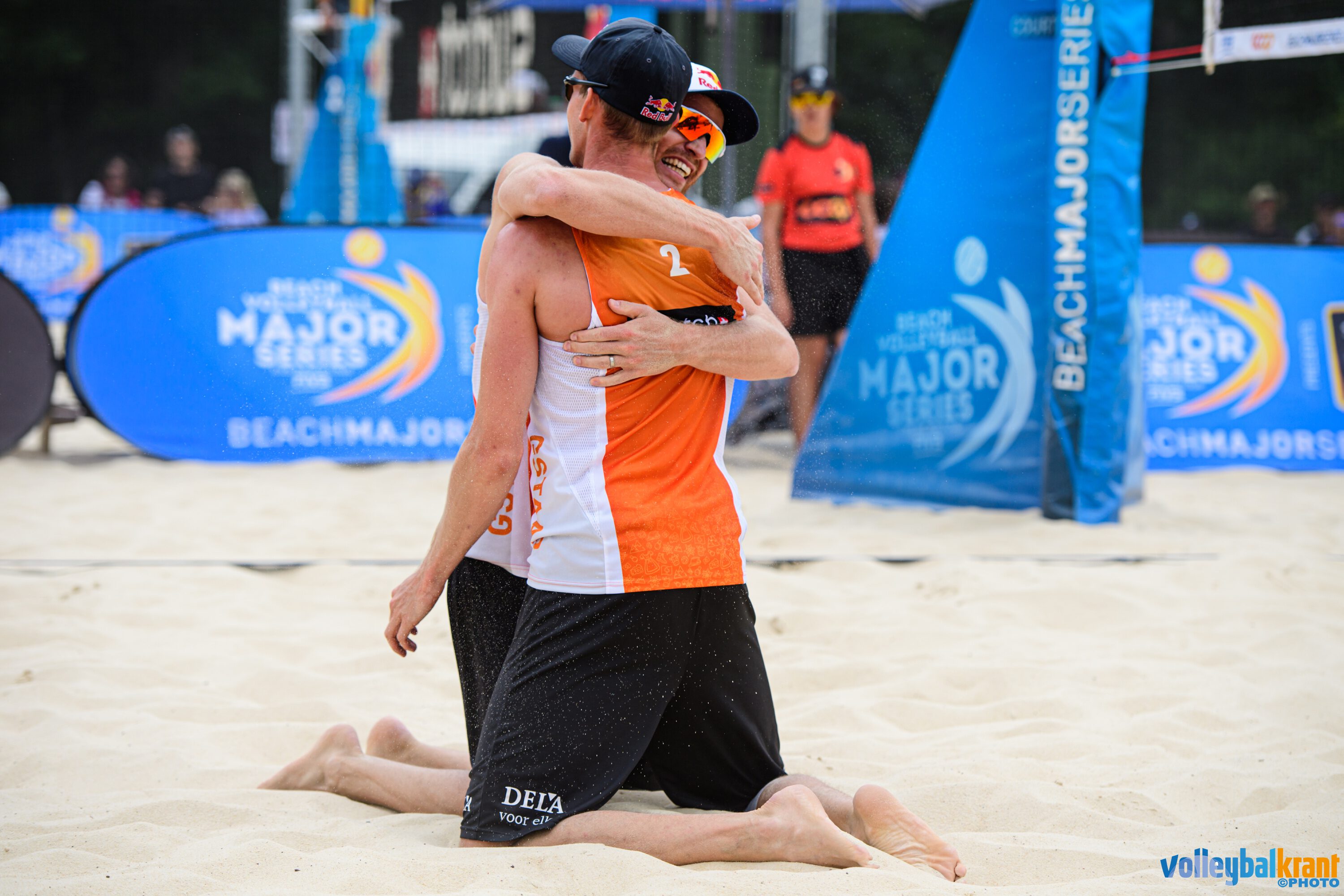 De eerste wedstrijd van Brouwer/Meeuwsen was een rematch van de laatste poulewedstrijd op het WK van vorige week. Daar won Nederland deze sleutelwedstrijd al. Een week later waren Alexander en Robert wederom een maatje te groot voor Olympisch kampioen Dalhausser en zijn partner Lucena. Onze Nederlanders maakten weliswaar meer fouten, maar met vijf aces van Alexander en een side-out percentage van 83% lag de druk volledig bij Amerika. Er was dan ook geen twijfel wie de wedstrijd zou winnen en zo mocht Brouwer/Meeuwsen zich opmaken voor de kwartfinale. Tegen Perusic/Schweiner werd het een ander verhaal. Na een overtuigende setwinst van Nederland werd het vanaf de tweede set een spannende pot met twee teams die vrijwel vloeiend hun side-out liepen. De set liep tot aan het einde van de set gelijk op en Nederland probeerde de wedstrijd op slot te doen door vanaf de servicelijn voor het punt te gaan. Boven de 20 ging dat helaas te vaak fout waardoor de Tsjechen meerdere kansen kregen om de set af te maken. Op 23-24 was het Schweiner die zijn float door het midden serveerde en zomaar op het zand viel (1-1). De derde set was een genot om naar te kijken. Na elf punten zorgde Tsjechië eindelijk voor de eerste break (5-7). Maar Nederland pakte die later weer terug en zo vochten de mannen de wedstrijd tot ver boven de vijftien punten uit. Zowel Nederland (2) als Tsjechie (4) hadden meerdere setpoints, totdat Alexander Brouwer op 21-20 (in de derde set die normaal tot de 15 gaat) zijn kans greef. Hij doorzag de bal van Perusic en maakte het karwei af (2-1). Robert en Alexander vlogen elkaar in de armen. De opluchting is ongetwijfeld groot, want de halve finale op een groot toernooi heeft lang op zich doen wachten.