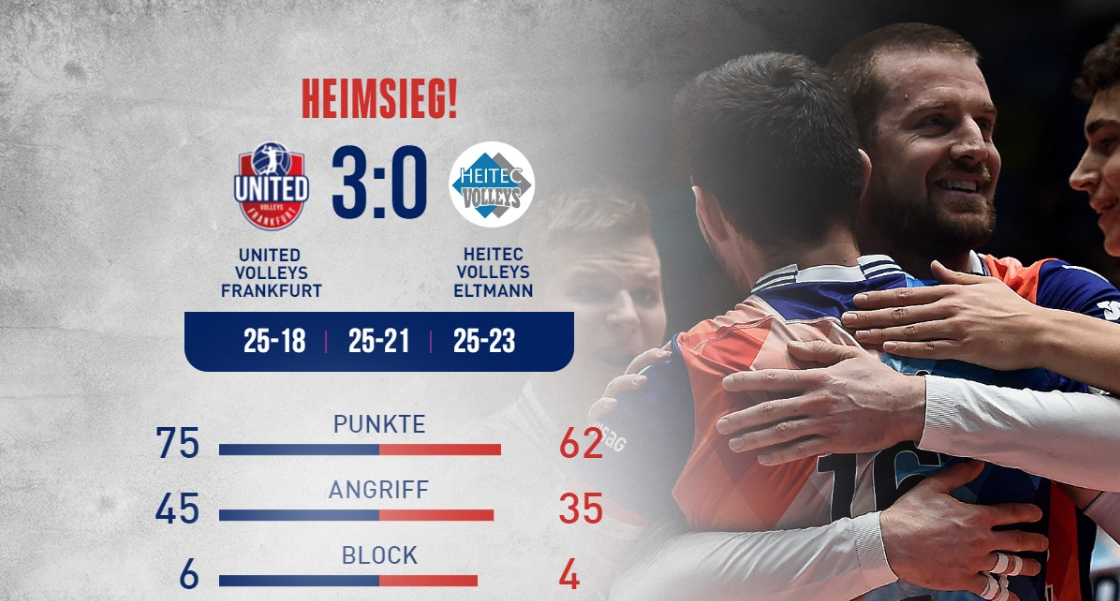 United Volleys Frankfurt van Ewoud Gommans en Floris van Rekom had vorige week nauwelijks een selectie op de been vanwege ziekte. De magen en darmen van de heren hadden het zwaar te verduren en de mannen die wel speelden waren verzwakt. Na verlies in Düren wist het team Eltmann redelijk eenvoudig te verslaan in een wedstrijd die op foutenlast beslist werd. Dit weekeinde werd uit bij de Bisons in Bühl gewonnen met 1-3. Frankfurt bezet daarmee de 4e plaats op de ranglijst. Floris van Rekom is nog niet inzetbaar vanwege een elleboogblessure. Schade aan banden lijkt het probleem. Hij verwacht binnen 1-2 weken weer inzetbaar te zijn. Door de komst van Gommans is de concurrentie op de passer-loper positie groot geworden met ook de goed spelende Japanner Yanagida in het team.