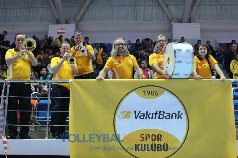 De tweede set was er eentje waarbij zelfs de scheidsrechters af en toe hun lach niet konden inhouden. Vakifbank was duidelijk beter en serveerde de libero (maar ook andere speelsters) van Calcit bijna letterlijk de wedstrijd uit. Vooral de service van Gozde Kirdar leverde veel ketsers op aan Sloveense zijde. Het eindigde in 25-8, wat voor Guidetti reden was om in set drie ook vaste waarde Anne Buijs rust te gunnen. De huisband van Vakifbank zette nog maar eens een deuntje in, waardoor de sfeer goed bleef.
