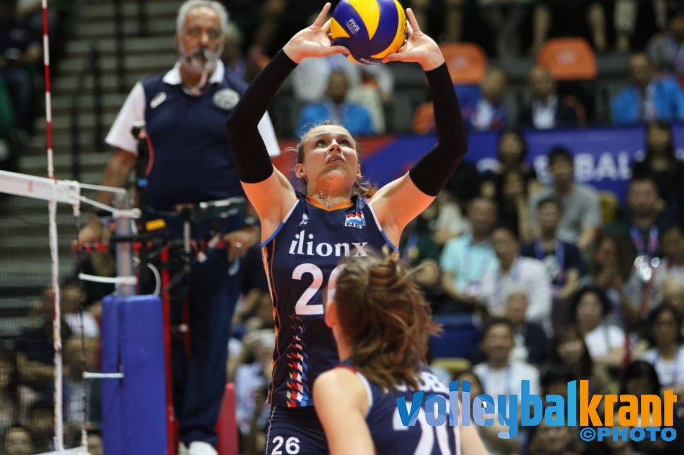 Hester Jasper mocht in de derde set blijven staan op de plek van Oude Luttikhuis. Nederland was opnieuw sterk in de beginfase (4-2), maar moest daarna vier punten op rij aan China laten. Vervolgens ging het hard. Ondanks de time-out van Beltrami bij 11-6 lukte het Nederland om het gat kleiner te maken. Vooral aanvallend maakte China makkelijker de punten en stonden er bij 24-16 flink wat matchpoint op het scorebord. Door goed werk van Knip en Marrit Jasper werkte Nederland daar nog wel vier van weg, maar zorgde een uitgeslagen bal van Meijers voor de beslissing.
