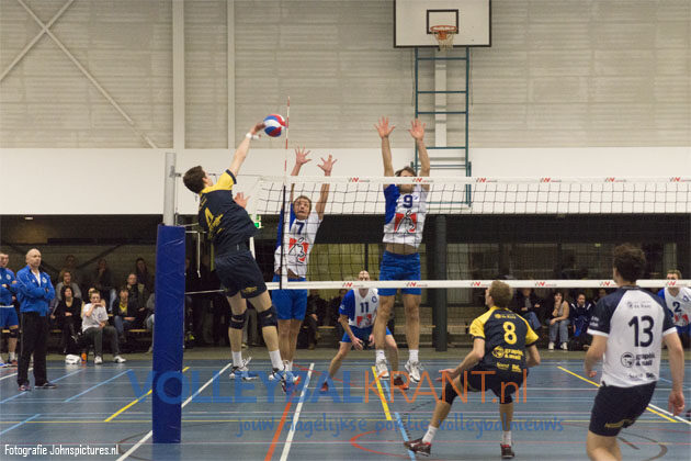 Na tweemaal schipbreuk te hebben geleden tegen respectievelijk US en Nesselande hadden de mannen van Compaen voor eigen publiek duidelijk iets recht te zetten. Tijdens de donderdagse videoanalyse van de uitwedstrijd in Meijel zette coach Rieuwers een ingenieus strijdplan uiteen. Het belangrijkste onderdeel daarvan – een strakke service op de aanvallend sterke linksvoors van Peelpush – werd vrijwel de gehele wedstrijd goed uitgevoerd. Hiermee werden ‘toren van Hoorn’ Rick van Baar en Wouter Schoonenberg in staat gesteld om met een hoge blokkering het venijn uit de Limburgse aanval te halen.