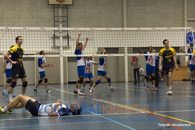 In de vierde set ontspon zich een boeiend gevecht. Beide teams lieten zien waarom ze aanspraak maken op de tweede plaats en met name door sterk verdedigen van onder andere libero Mike Kruizinga kreeg het publiek het spektakel waar het voor gekomen was. In de slotfase van de set wisselde coach Rieuwers Daniel Homburg en Koen Baas het veld in voor Nils Augustijn en Marvin Andringa. Deze wissel pakte goed uit, want koud in het veld timmerde Homburg op aangeven van Baas drie keer op rij bijna een gat in de Oostzaanse sporthalvloer. Onder aanmoediging van het wederom talrijk opgekomen publiek gaf Compaen het laatste zetje en trok de wedstrijd met 3-1 over de streep.