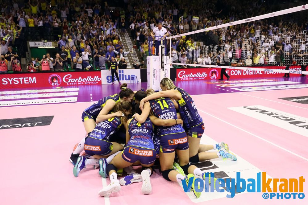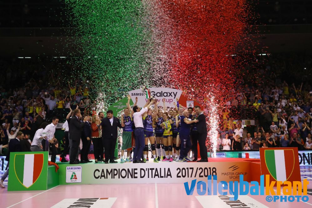 Samantha Fabris speelde een topwedstrijd voor de thuisploeg met 31 punten, waarvan 6 aces en een aanvalspercentage van 57%. Spelverdeelster Joanna Wolosz kreeg terecht de MVP award uitgereikt, want onder haar leiding was Conegliano een aanvallend dominant team. De emoties waren duidelijk zichtbaar bij Conegliano, waar ook De Kruijf en Folie op het veld feest kwamen vieren. Een ontzettend knappe prestatie van Santarelli en zijn team dat dit seizoen veel tegenslagen kende en in eerdere finales telkens het onderspit delfde tegen Novara.