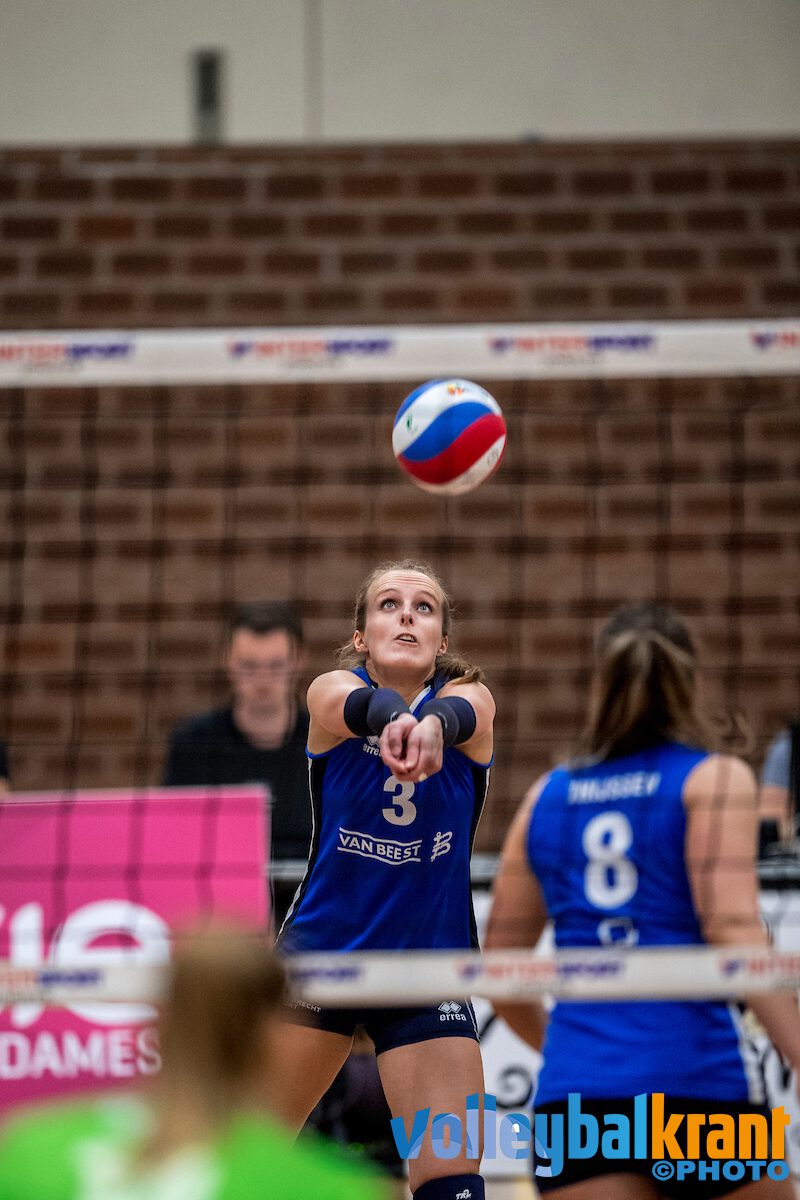 Lang gingen de teams gelijk op in de eerste set, maar eenmaal bij de big points was het toch Sliedrecht dat het beste van het spel had. Op 21-24 was er het eerste setpoint, dat via een fout van Alterno verzilverd werd. In set twee was het juist de thuisploeg die beter voor de dag kwam. Met een goede serviceserie van Kirsten Wessels stond er al snel een ruime voorsprong (14-8) op het scorebord. Het lukte Sliedrecht wel om dichterbij te komen, maar weer helemaal aanhaken lukte niet. Uiteindelijk ging de set met 25-20 naar Alterno, waarna de stand weer gelijk was.