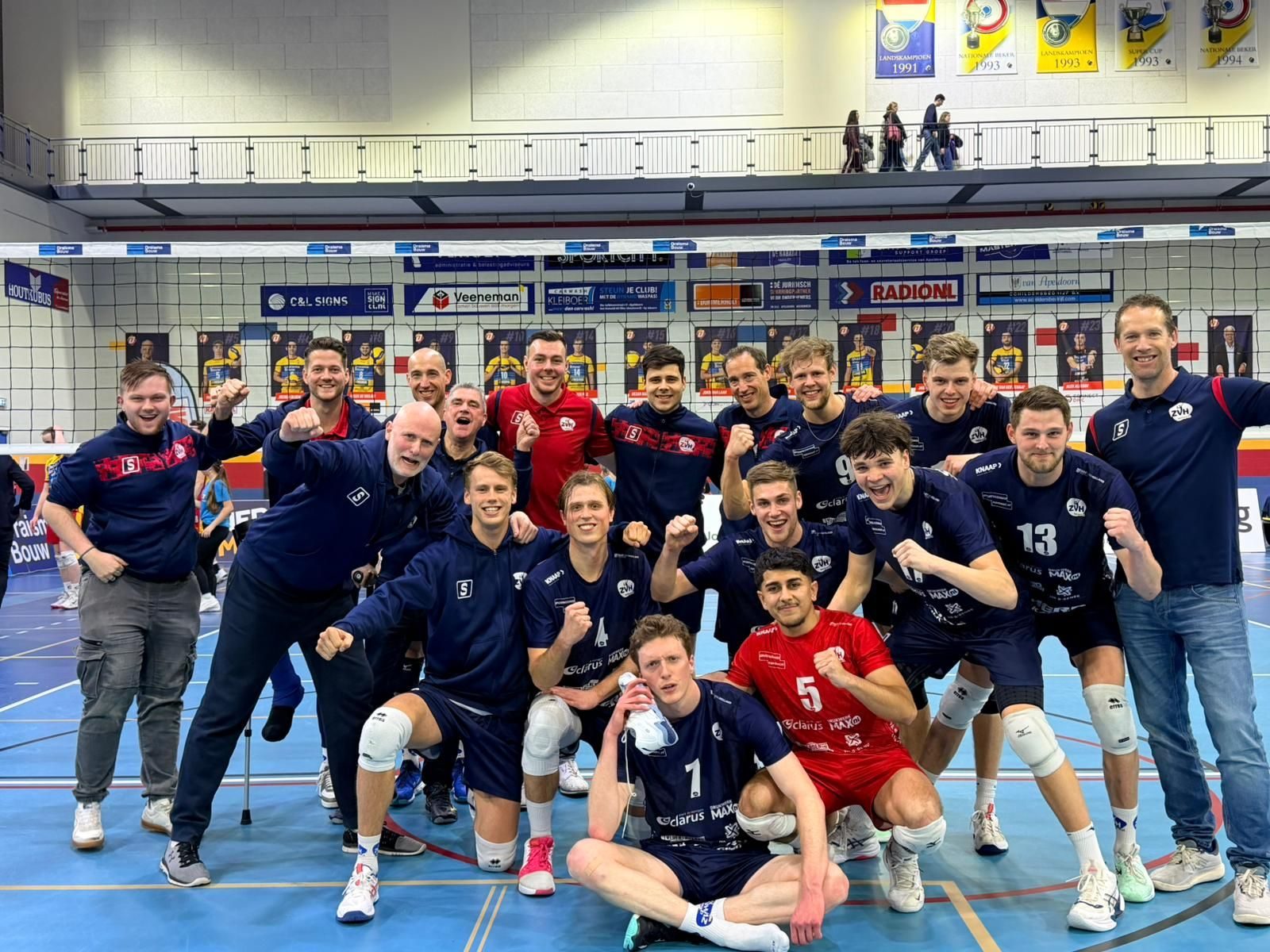 In de overige drie sets was SSS echter te sterk. Het lukte Stijn Held om letterlijk iedereen in de wedstrijd te krijgen. Zowel De Ruijter, Berger als Ramanis waren aanvallend efficiënt. En als de passing het toe liet werd Robin Boekhoudt continu aangespeeld. Boekhoudt kreeg maar liefst 21 ballen en hij zocht ook onder het net door vaak de confrontatie op. Isenia en Krijnsen wisten af en toe een killblock te pakken, maar met 55% aanval over de hele wedstrijd was SSS moeilijk te stoppen. De wedstrijd werd binnen gesleept door een uitstekende serviceserie van Ramanis in de vierde set. In een spectaculair slot wist dezelfde Ramanis De Meerwaarde op de banken te krijgen door het verlossende punt te maken (26-28).