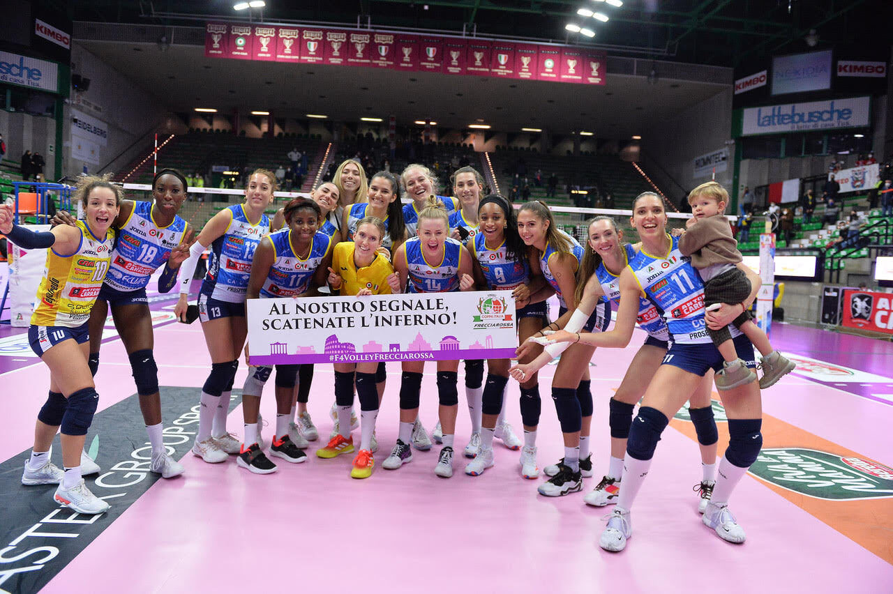 In één van de andere kwartfinales won Reale Mutua Fenera Chieri verrassend van topclub Vero Volley Monza in drie sets (25-23, 25-23, 25-18). De kwartfinale tussen Savino Del Bene Scandicci en Busto Arsizio moet nog gespeeld worden. Nika Daalderop en Novara treffen in de halve finales Chieri, Conegliano wacht een ontmoeting met de winnaar uit de nog te spelen kwartfinale. Het toernooi gaat verder met een Final Four, die in Rome gespeeld zal worden met de halve finales en de strijd om de medailles.