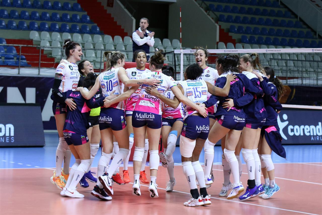 Vargas werd topscoorder met 29 punten, voor Novara was Bosetti met 18 punten de meest scorende speelster. Voor Daalderop bleef haar aandeel beperkt tot de invalbeurt in de eerste set waarin ze 1 punt maakte. Volgende week, op 3 maart, staat de return in Italië op het programma.