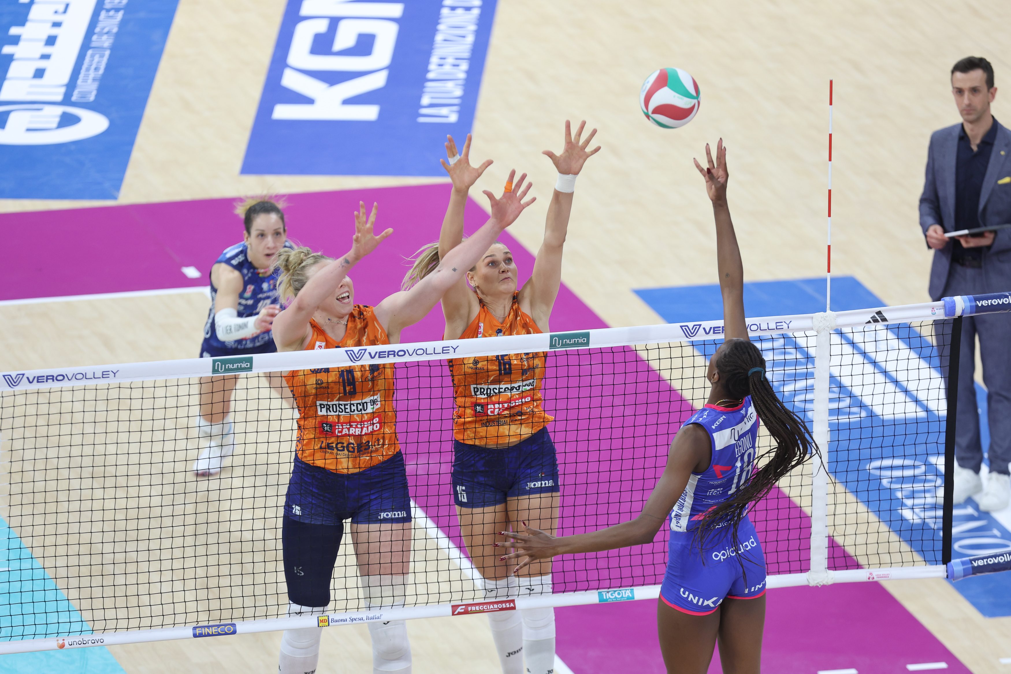 Daalderop mocht in set drie blijven staan en ook daarin hadden de bezoekers de hele tijd het initiatief. Aan de hand van Egonu (9 punten) en de Amerikaanse passer-loper Khalia Lanier (6 punten) hield de thuisploeg het verschil klein, maar op gelijke hoogte komen lukte niet. Conegliano kreeg twee matchpoints, op de service van Daalderop was het gelijk raak. Geheel in stijl sloeg Haak (19 punten) het matchpoint tegen de grond (22-26) en bezorgde daarmee haar team met een overtuigende overwinning de landstitel. Het kampioenschap werd uitgebreid gevierd met het team, de staf en de meegereisde fans. Gelijk na de wedstrijd mocht aanvoerster Asia Wolosz de beker in ontvangst nemen. Haak werd gekozen tot MVP van de finale.