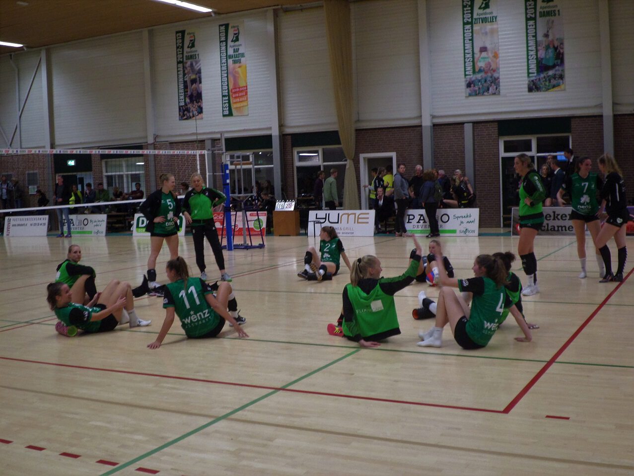 Coronaregels, handgel, looplijnen en stewards in gele en oranje hesjes vormden zaterdagavond een onlosmakelijk bestanddeel van de Apeldoornse zusterstrijd in de Topdivisie A. Volleyballen in coronatijd is voor iedereen eventjes wennen, maar de ingeschakelde vrijwilligers van de thuisclub bewezen dat het probleemloos kan wanneer elke bezoeker bereidwillig meewerkt en -denkt. Dat er naast de slechts 30 toegestane ‘normale’ toeschouwers een bijna even groot aantal familieleden, vrienden en clubleden in de niet al te ruime hal plaatsnamen, leidde geen moment tot hachelijke situaties.