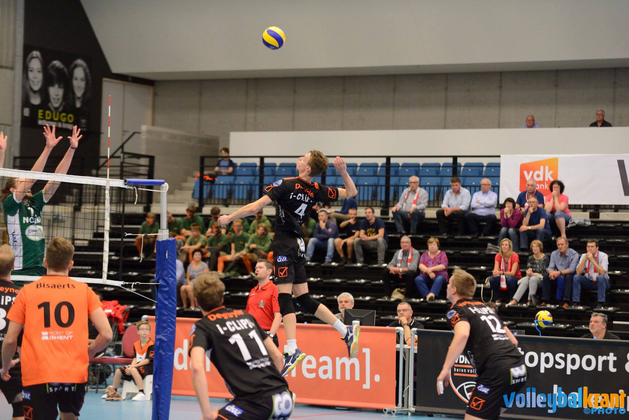 VDK Gent, met de Nederlanders Jente de Vries, Chris Ogink en Jeffrey Klok speelde tegen Par-ky Menen. In de eerste set ging het gelijk op tot Gent een klein gaatje sloeg op 18/16. Maar met Sinnesael op serve scoorde Menen acht keer op rij en pakte de openingsset. Halverwegge de tweede set pakte Menen de voorsprong (10/16) maar de Vries nam zijn ploeg op sleeptouw en kwam terug tot 17/19. Een time-out verder kon Menen het met Sinnesael en Ver Ecke afmaken. In de derde set kon Gent via 16/14 en 20/16 doorstomen naar de setwinst. Ook in de viede set kwamen ze nog 9/9 maar een tie-break konden ze er niet uit slepen. Verdedigend stond het goed maar het was niet genoeg (19/25, 20/25, 25/20, 20/25). Jente de Vries werd topscoorder met 24 punten. Chris Ogink maakte 10 punten, waarvan 3 blocks. Jeffrey Klok kwam niet van de bank.